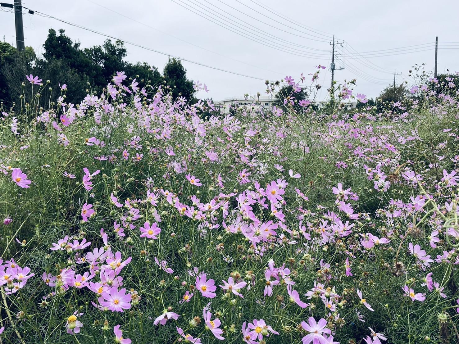 訪問先のお庭にたくさんコスモスが咲いていました。