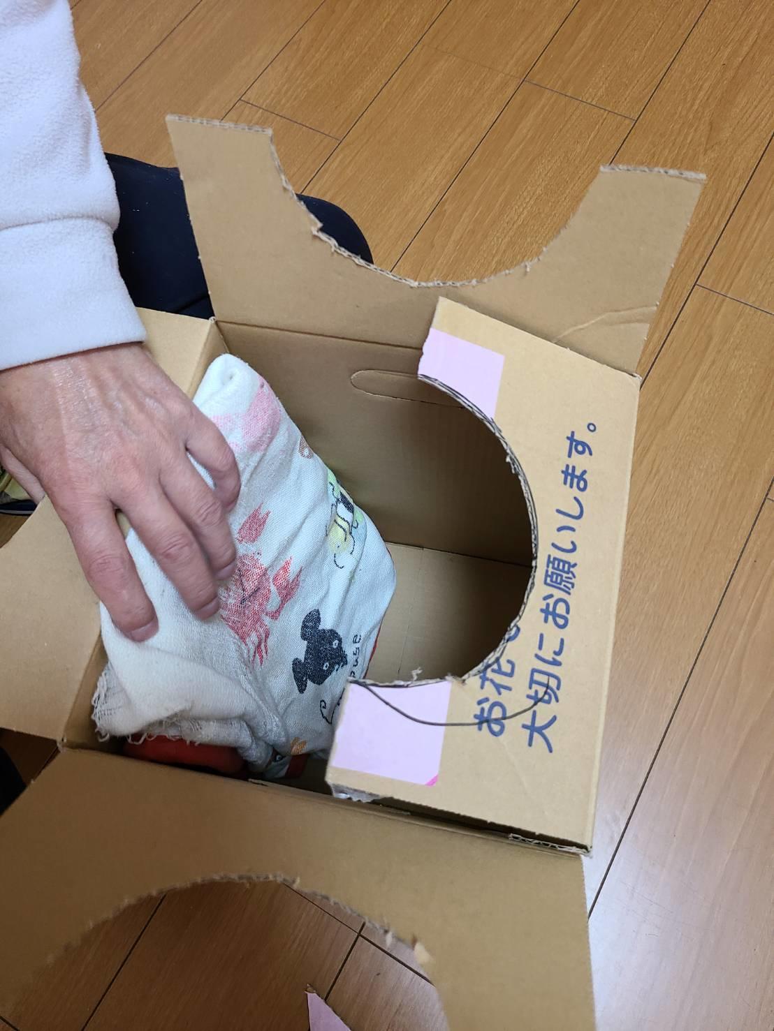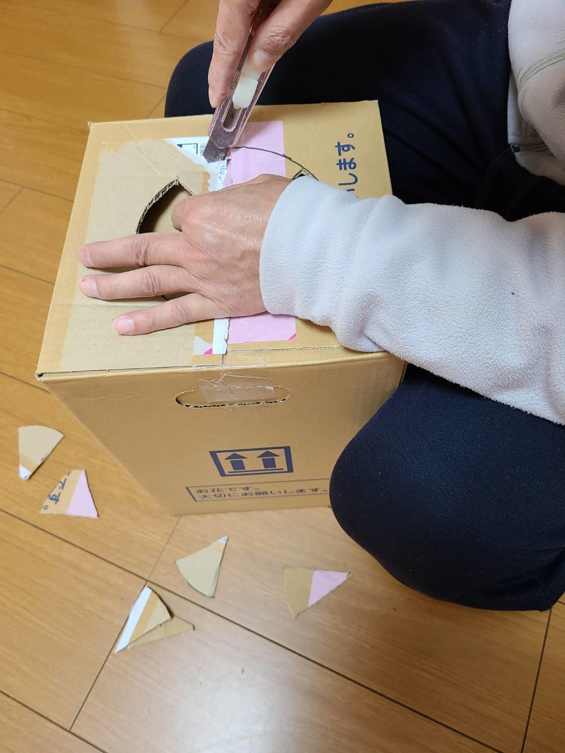 と、段ボール箱をcutし始めました。