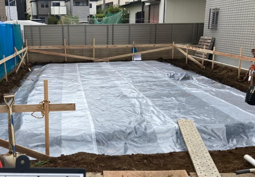 その上から防湿ビニールシートを敷設します。