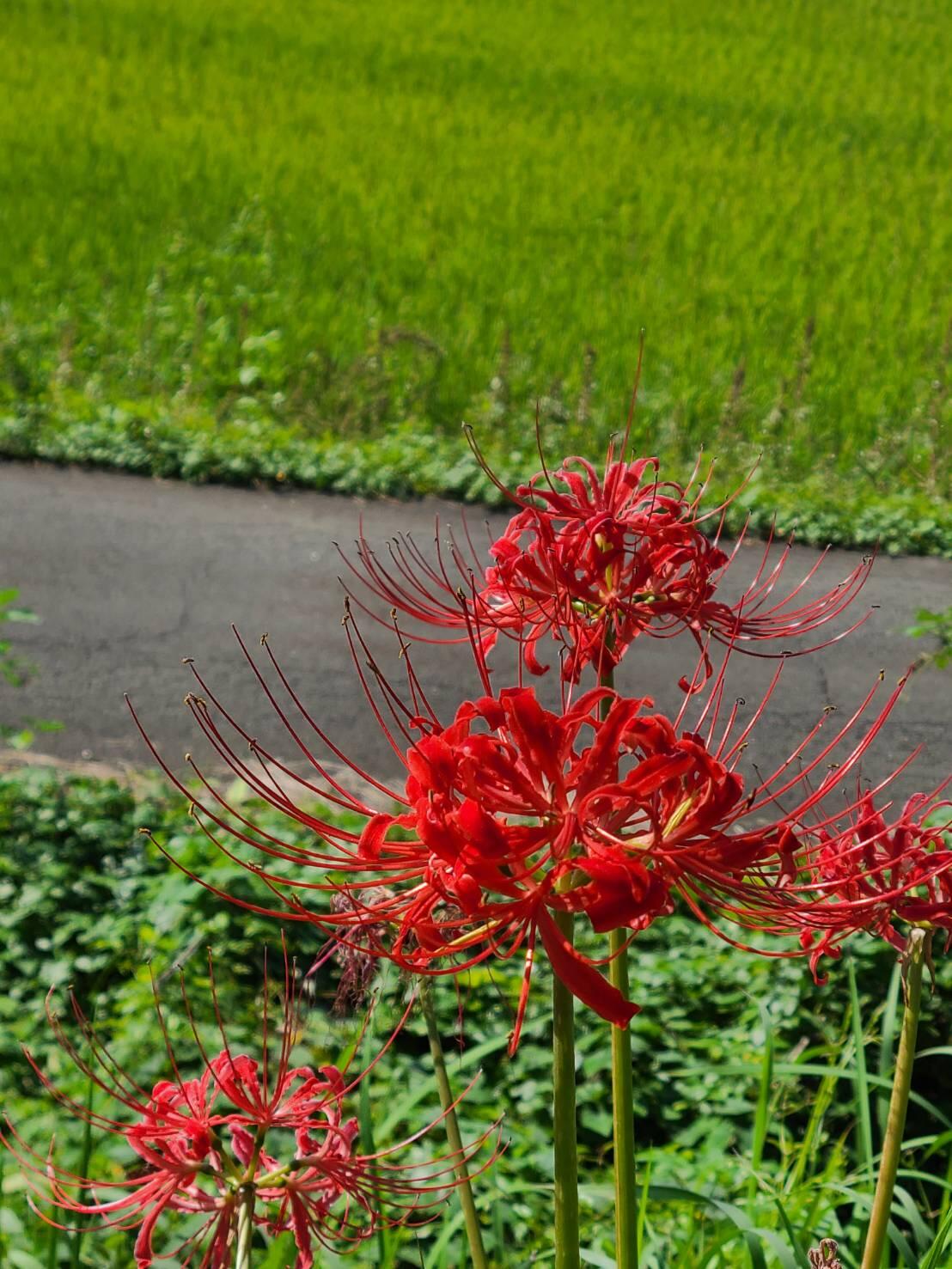 彼岸花と桜(ソメイヨシノ)や