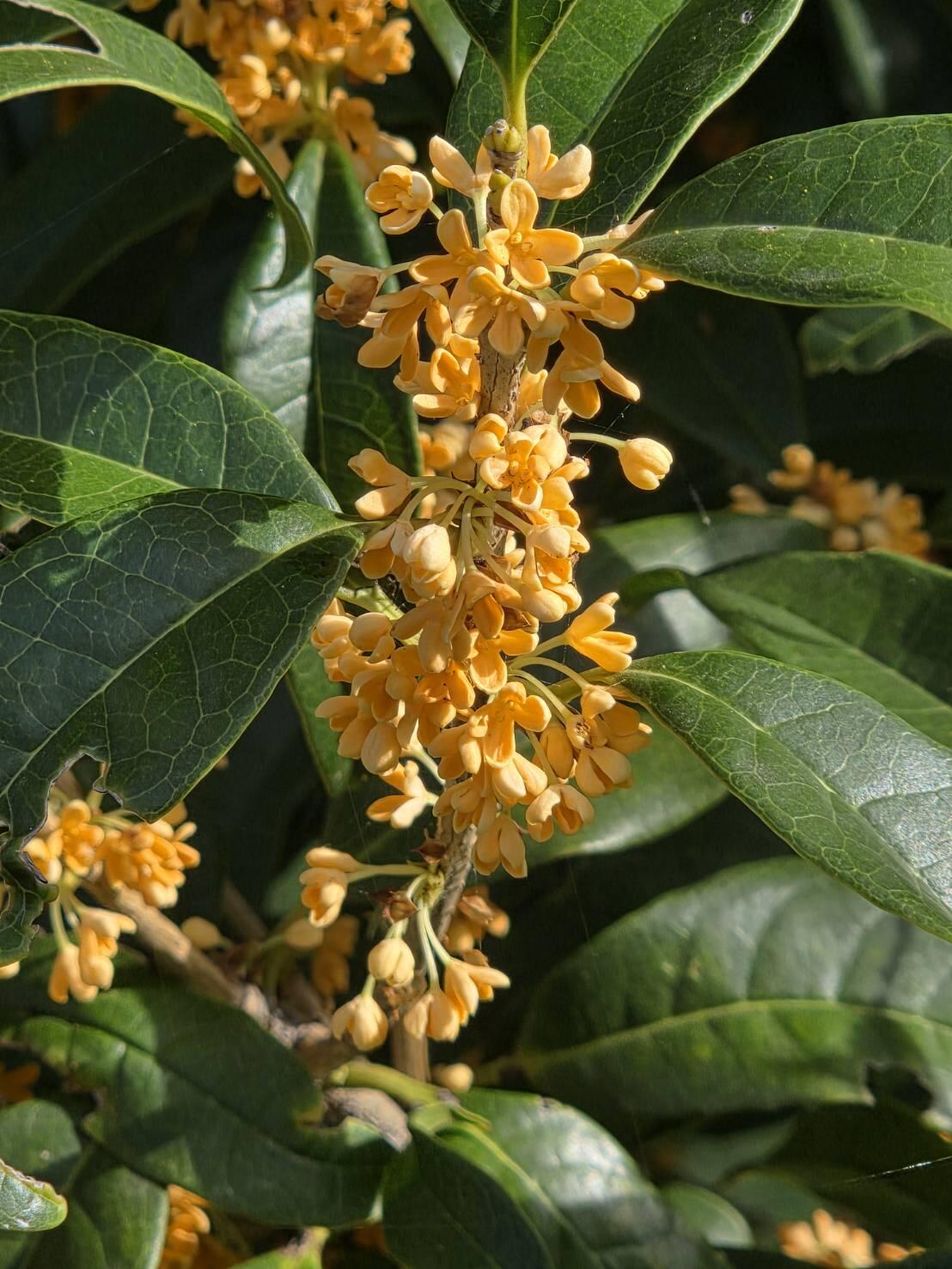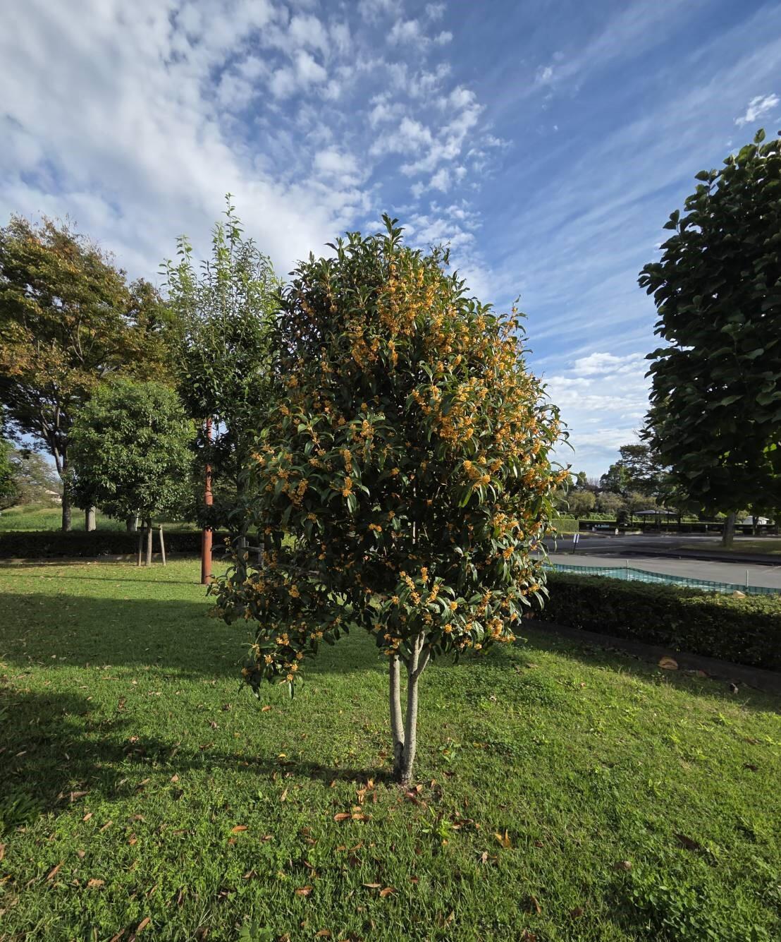 (我が家の金木犀は見上げるほど大きくて花が見えない)