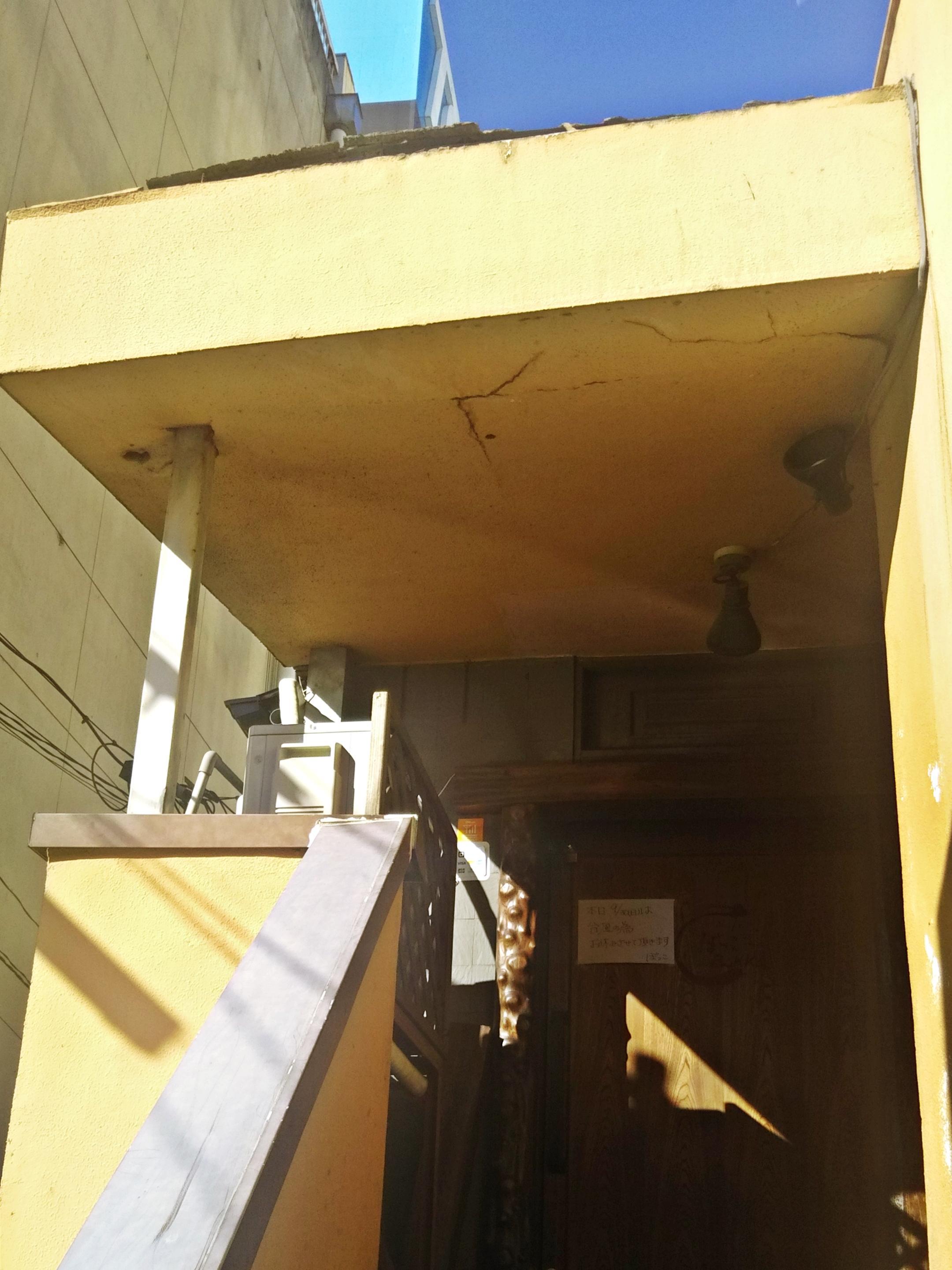 「店舗入口の天井から雨漏れがしている」とのご相談でした。現場調査に行くとかなり前から雨水が侵入していた形跡があり、解体してみると木材が腐食していて危険な状態でした。修理も終わり今は安心して営業していただいております。
