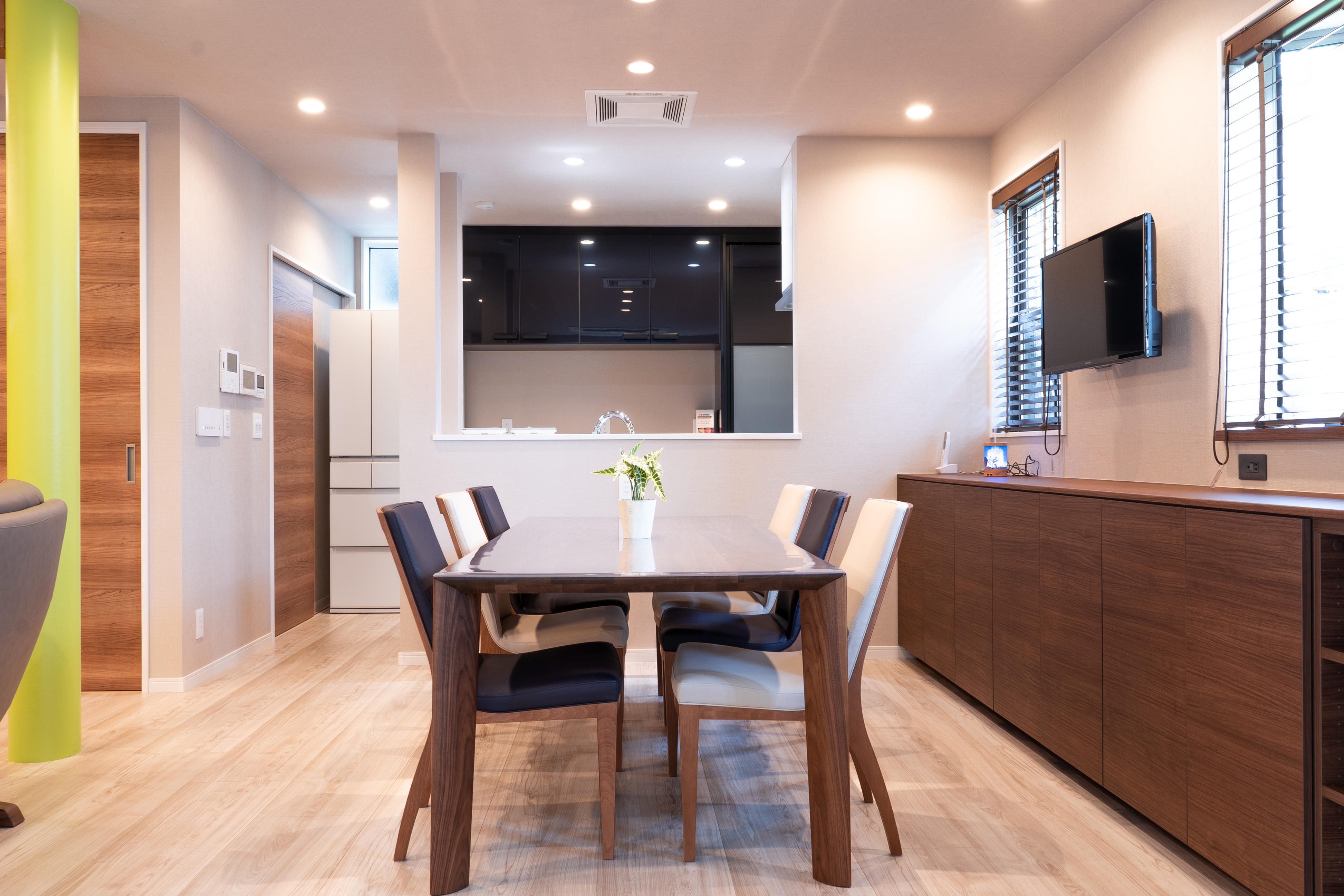 キッチンの壁も大きく開けて、明るいダイニングとつながりました。