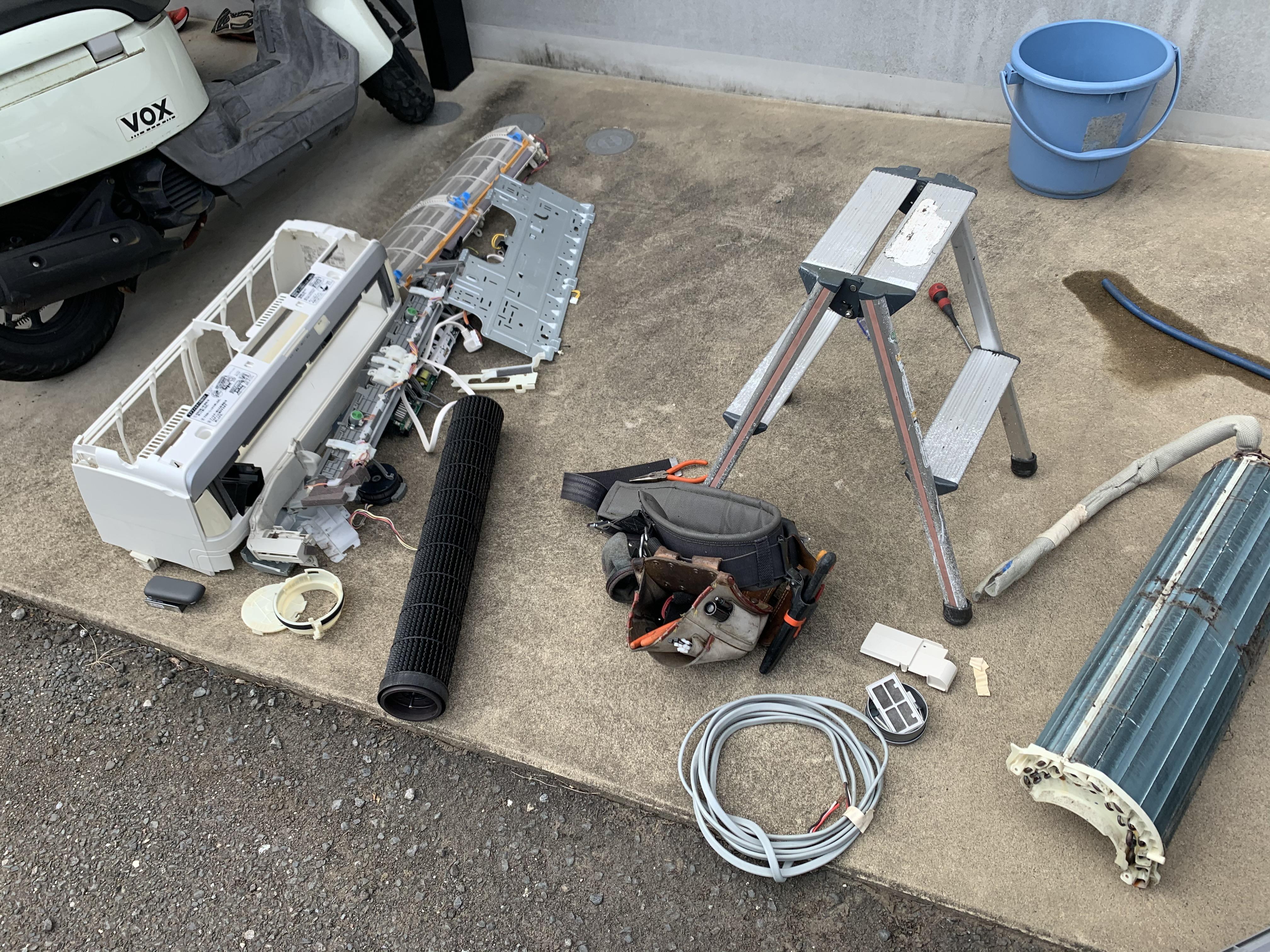 今回は、お家のエアコンをまとめて6台洗浄させて頂きました。 機種によっては、細かく分解して、内部までしっかりきれいにします!!