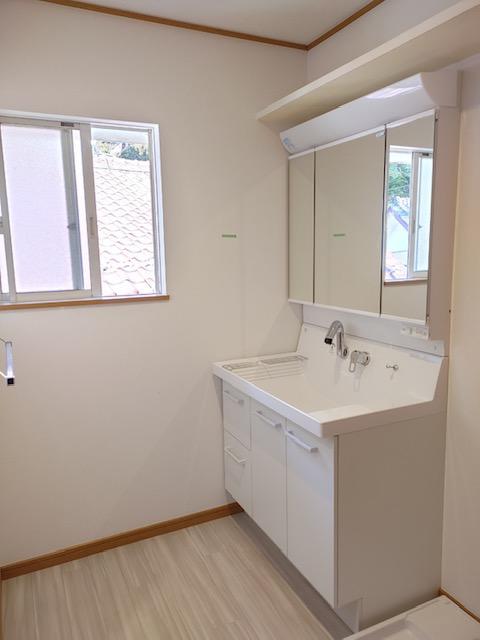 丸型洗面から、広々使えるワイドな化粧台へ!