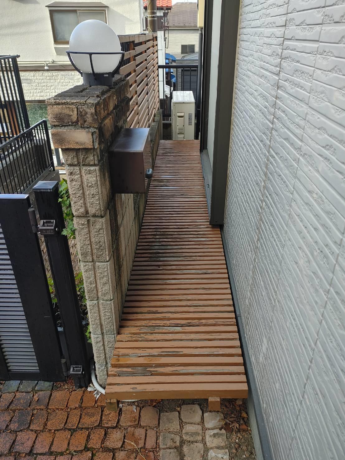 古くなった木製のぬれ縁を、樹脂製の物と交換しました。 強度も強く、雨にも強く、施工も早いのでおすすめです。