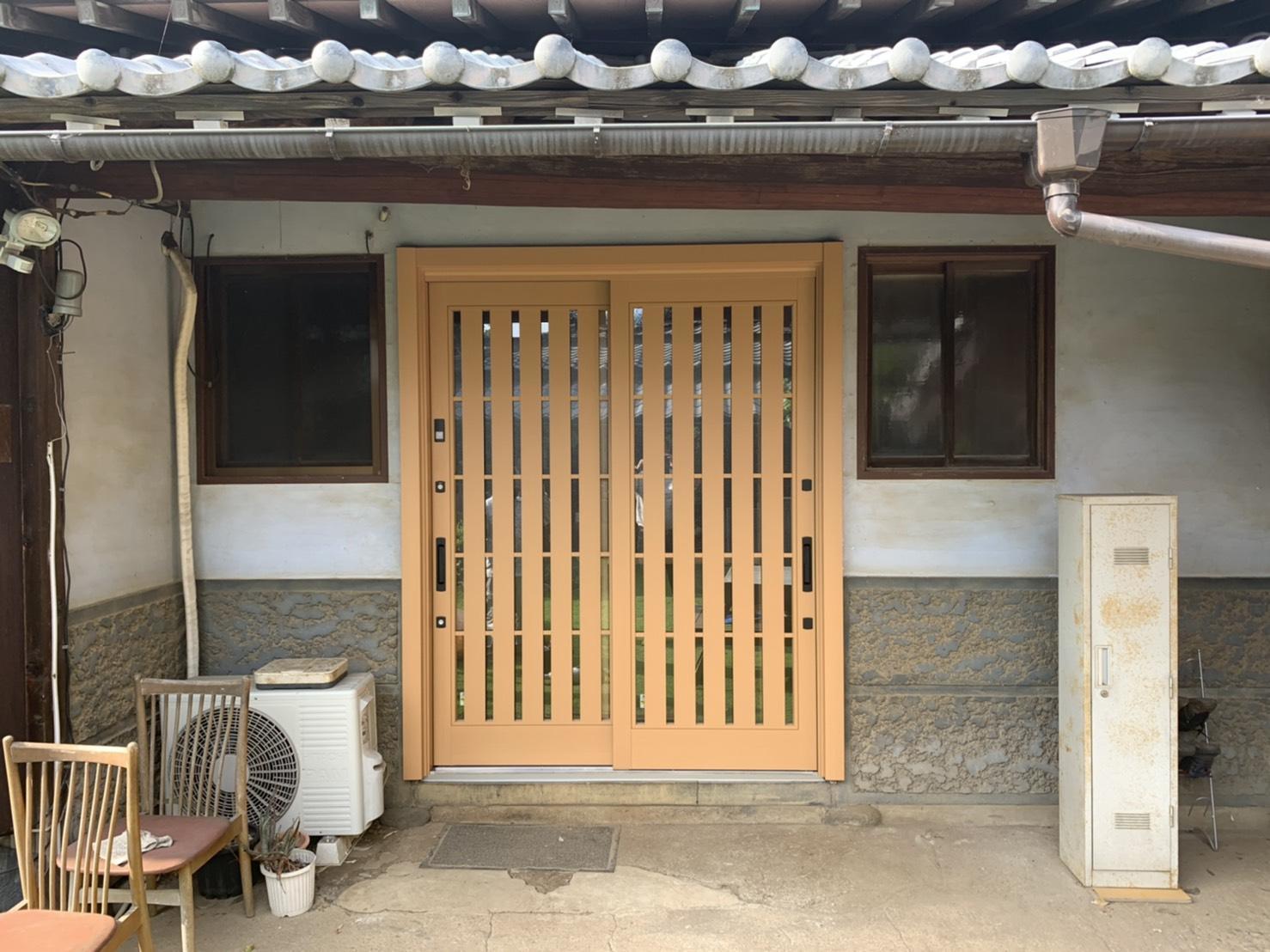 築300年の玄関引違戸をリシェントにて交換させていただきました。 和風で落ち着いた感じに仕上がりました。