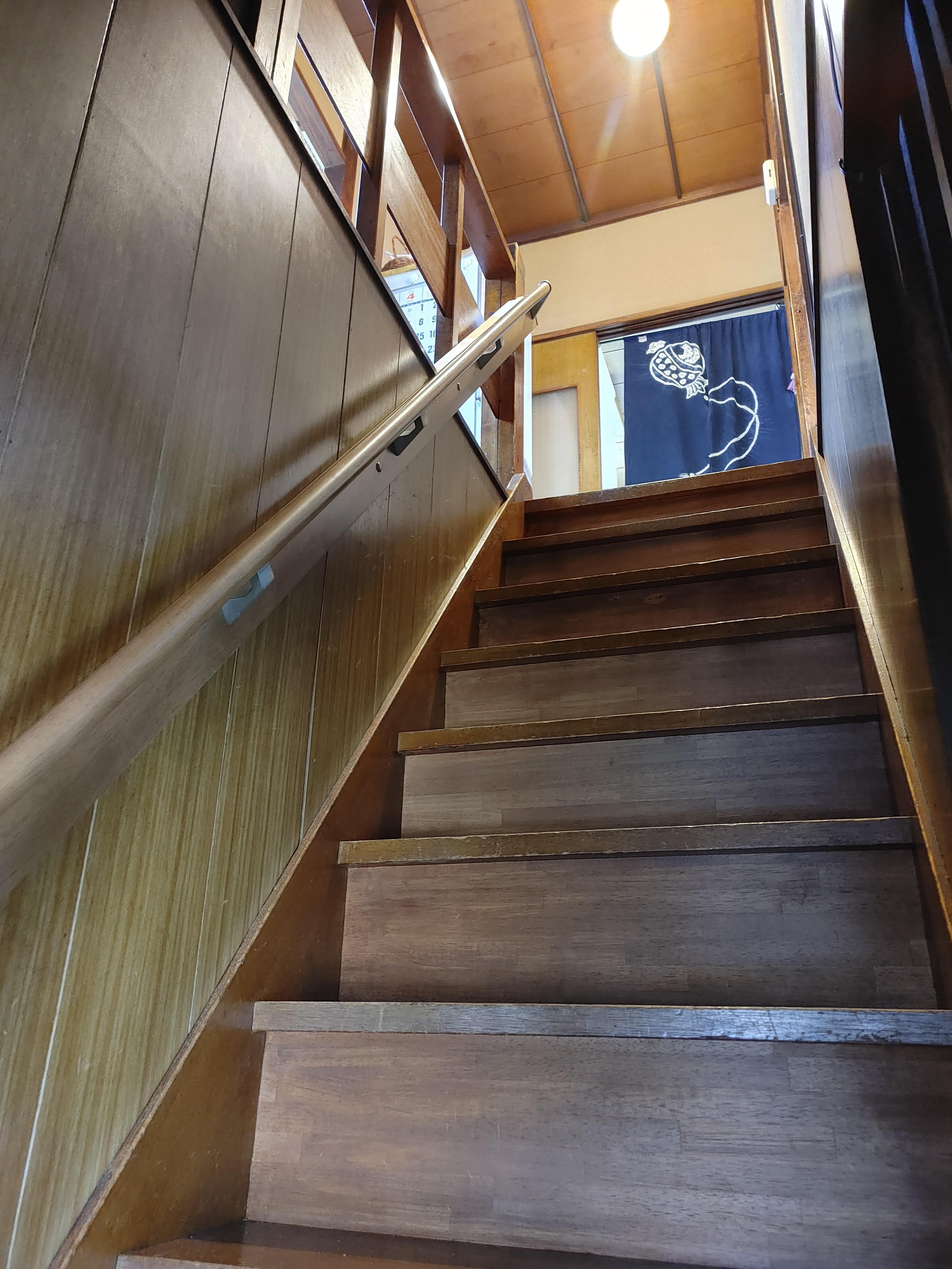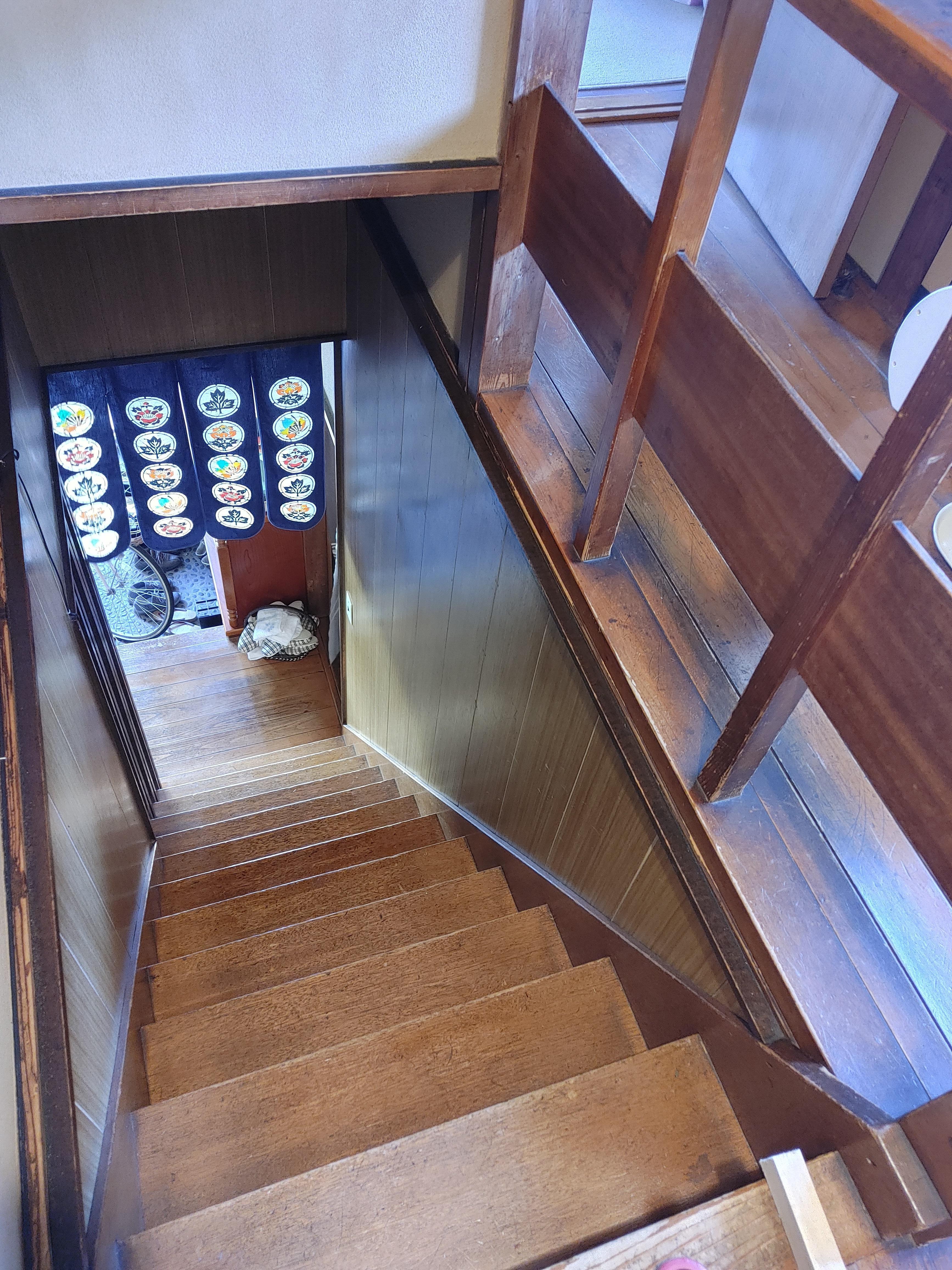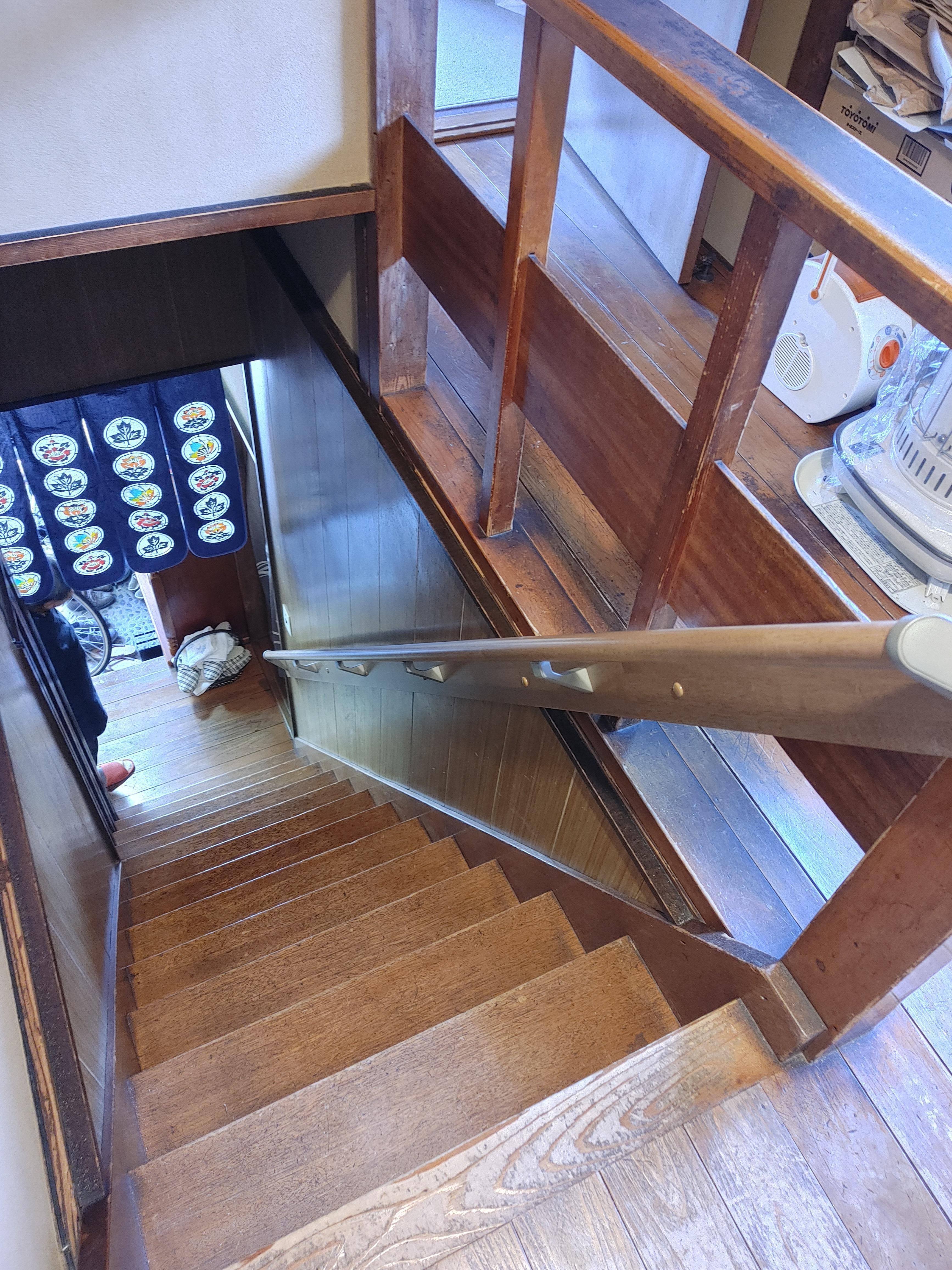 急な階段に手すりを付けました。 安全に昇り降りできますね!