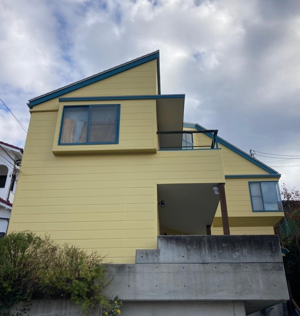 こだわりカラーでの塗り換え 前回塗装からあっという間に10年! 屋根はカバー工法で工事済みなので今回は洗浄のみ。 破風は木部なので痛みが早いですね。 サッシは基本塗装しませんが、お施主様のこだわりで塗装しています。