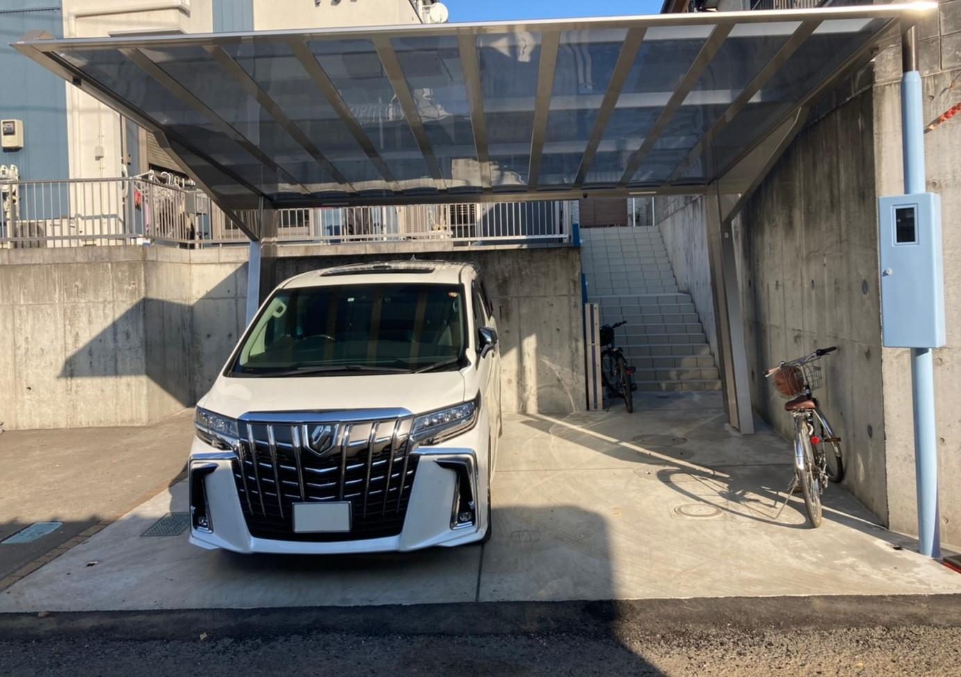駐車場にカーポートを取り付けました。 雨の日の乗り降りの便利さに加え、カーポートがあるだけで冬の寒い朝、窓が凍りません! 車体の痛みも少なくなります♪ 自転車も置ける大きめカーポート!お薦めです!! シコク『マイポート7』