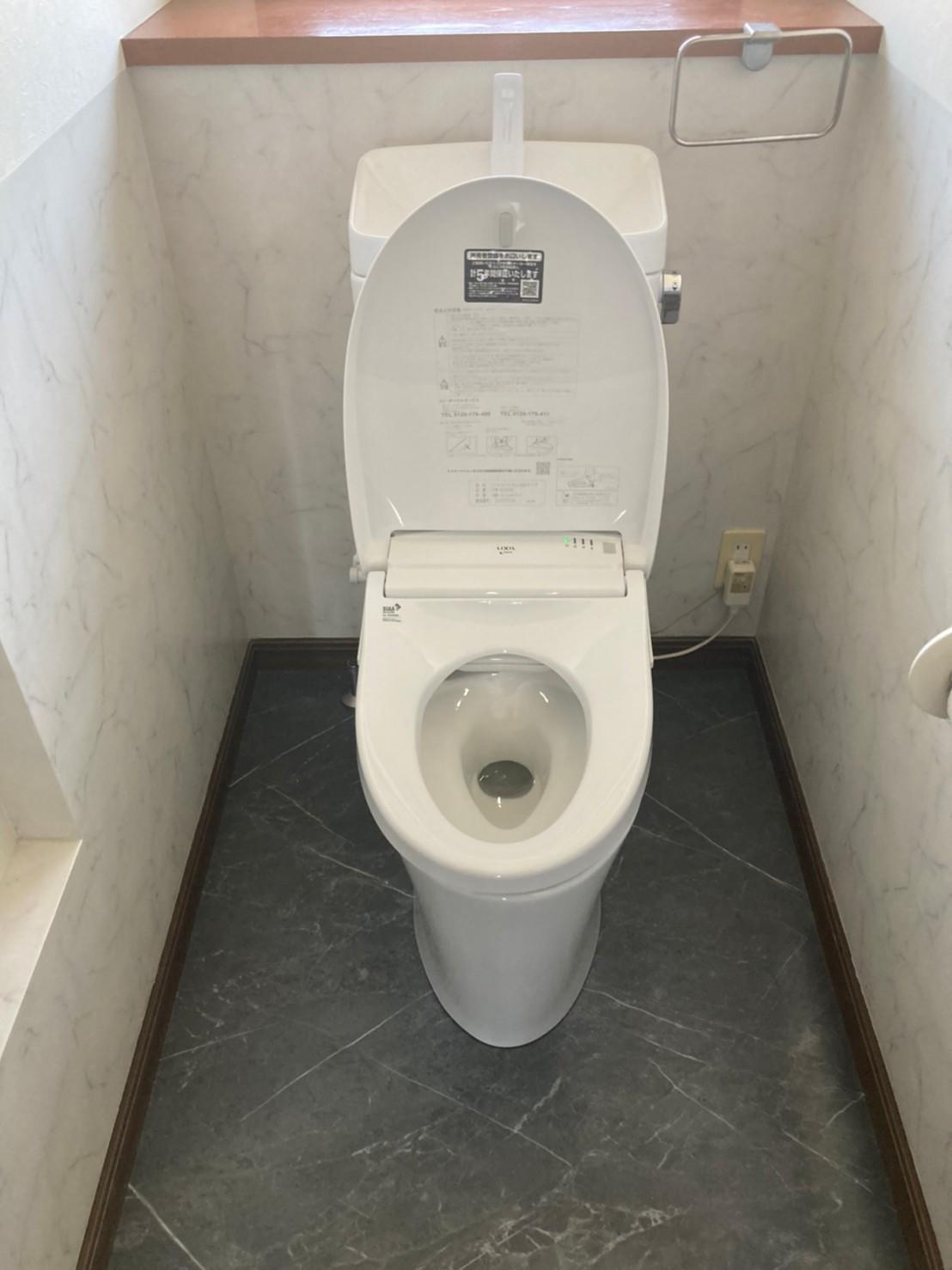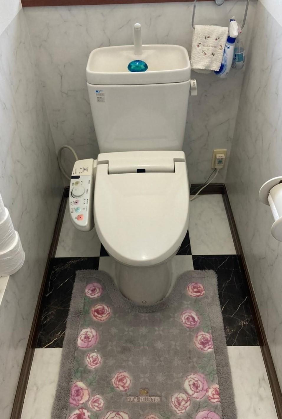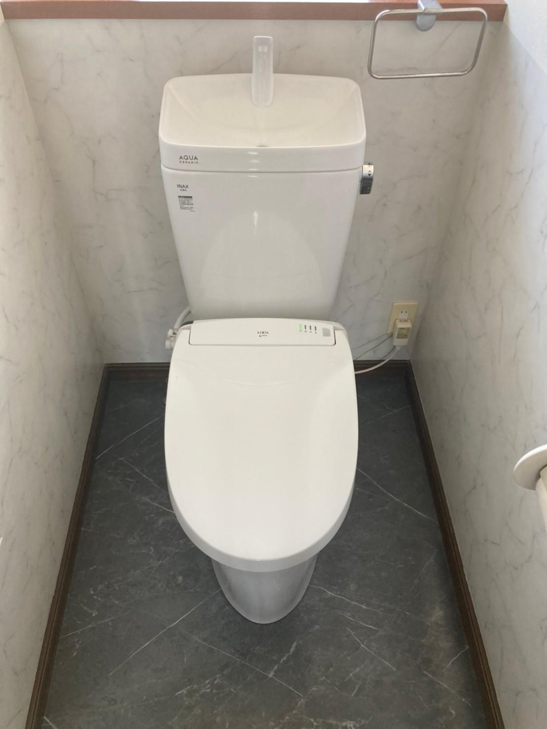 トイレと床のフロアー交換しました。 見た目はあまり変わらないですが、性能はグンとUP! フチの無いアクアセラミックの便器はお掃除ラクラク♪でトイレ掃除のストレスが減ります。