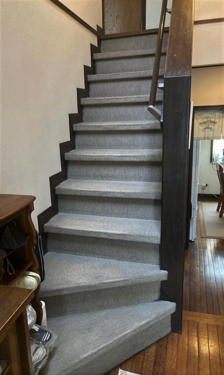 階段の絨毯の貼り替えました。 グレーから茶系へ! 玄関から入ってきた時の印象がシックになり、高級感が出ました。