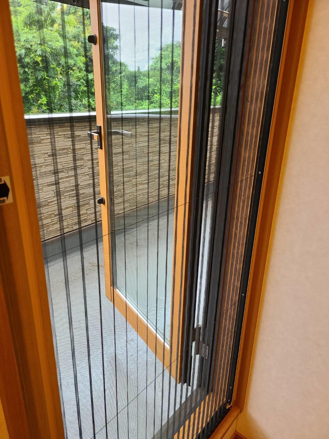 経年劣化で穴の開いた網戸の交換をしました。 網戸のみの張替はできないので、枠ごと交換です。 重たかった引き戸が軽くなり、力を入れずに開け閉めできるようになりました。 「年をとって手の力が弱くなってきたので、軽くなってとても助かります」とお客様も喜んでいました。