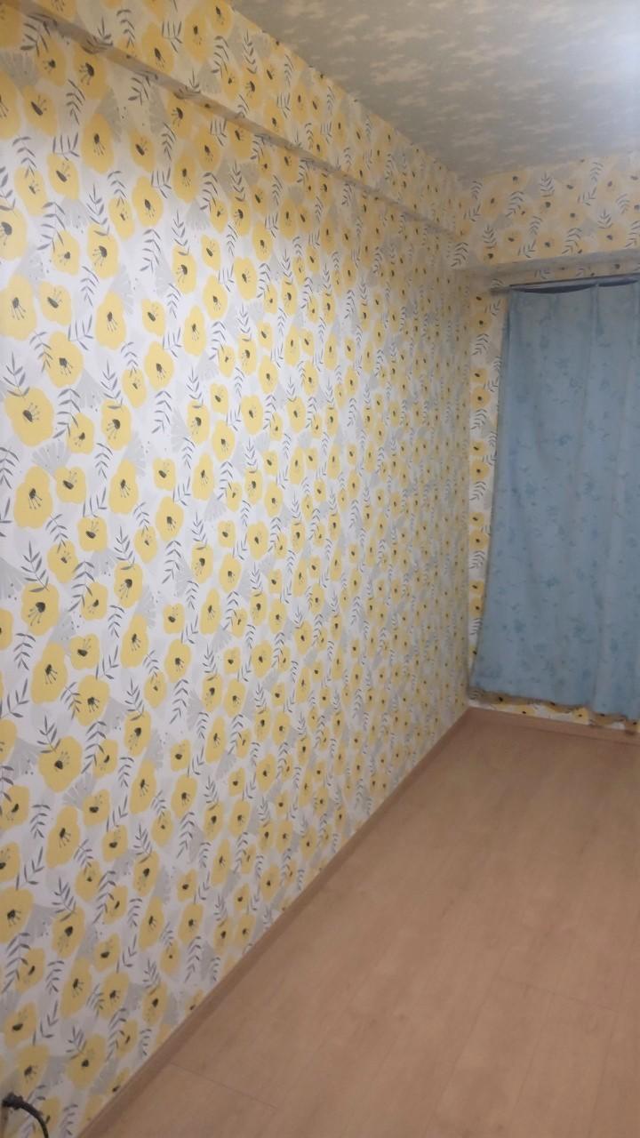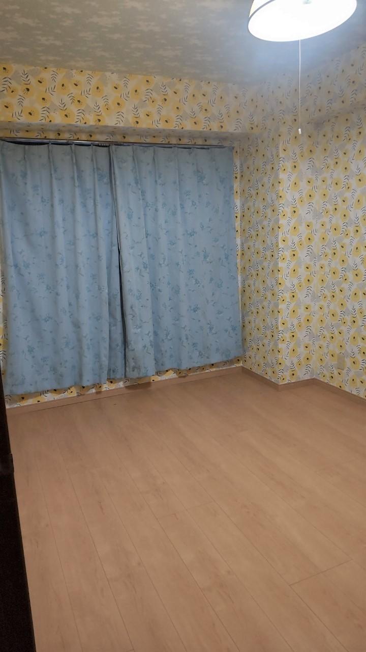 床上貼りと壁紙の貼り替えをしました。 マリメッコ風の壁紙はインパクト大! 床も明るめのウッド調クロスにしたので、お部屋全体が明るくなりました♪