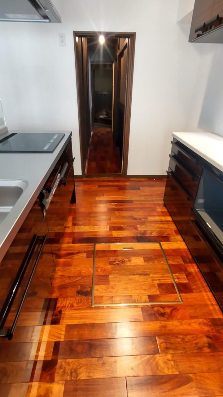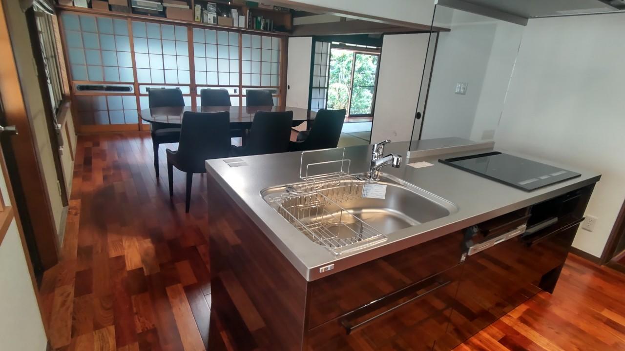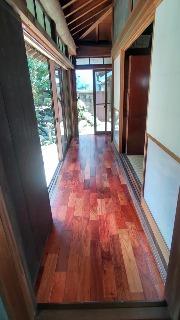 お客様がたくさん集まるご実家を全面的にリフォームしました。 リビングから廊下まで同じ床材を使用したので、一体感があり、広々と感じる空間に! 漆喰も塗り替え、レトロモダンな雰囲気になりました。