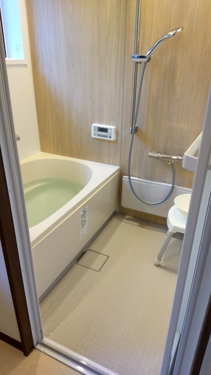 築年数の経ったお風呂。 老朽化で湯船に穴が開いてしまったため浴室の改修をしました。 今までの冷たかったタイルから足元がヒヤッとしない「キレイサーモフロア」に変更! これからの寒い季節にピッタリです♪
