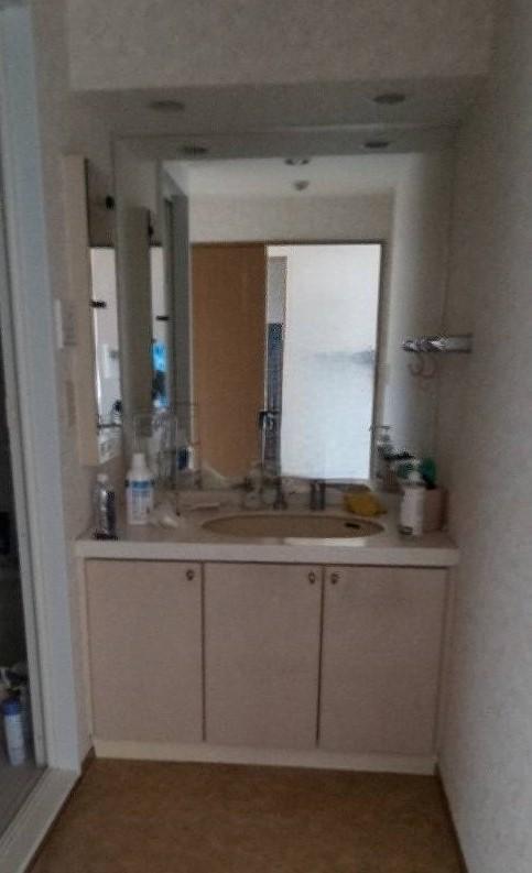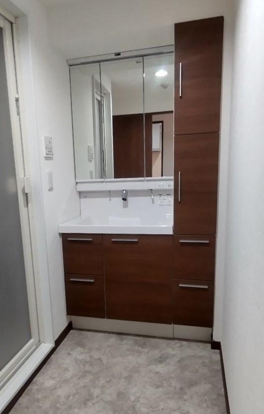 洗面化粧台の交換をしました。 洗面化粧台は手間をかけずにいつでもキレイにしておきたいですね。 L.C.は上からの水栓なのでお掃除がとても簡単! カウンターは水ハネをさっとひと拭き出来て毎日のお掃除があっという間です♪ 落ち着いた色合いはスタイリッシュですね。