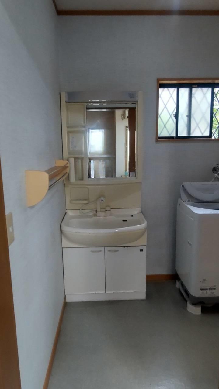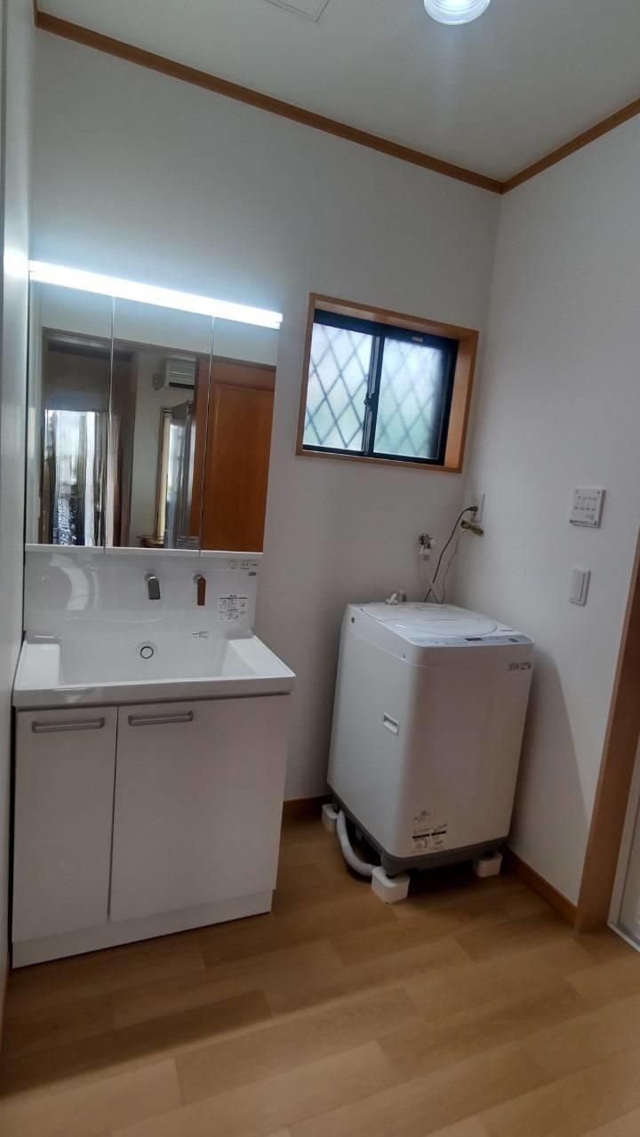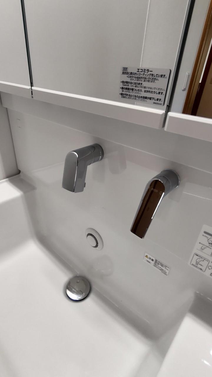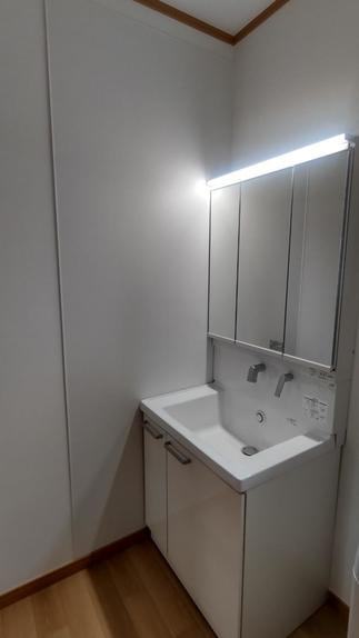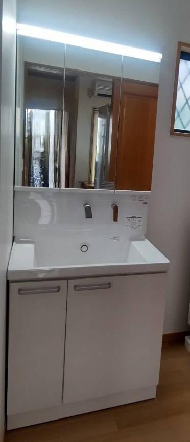 洗面化粧台の交換と壁紙の貼り替えをしました。