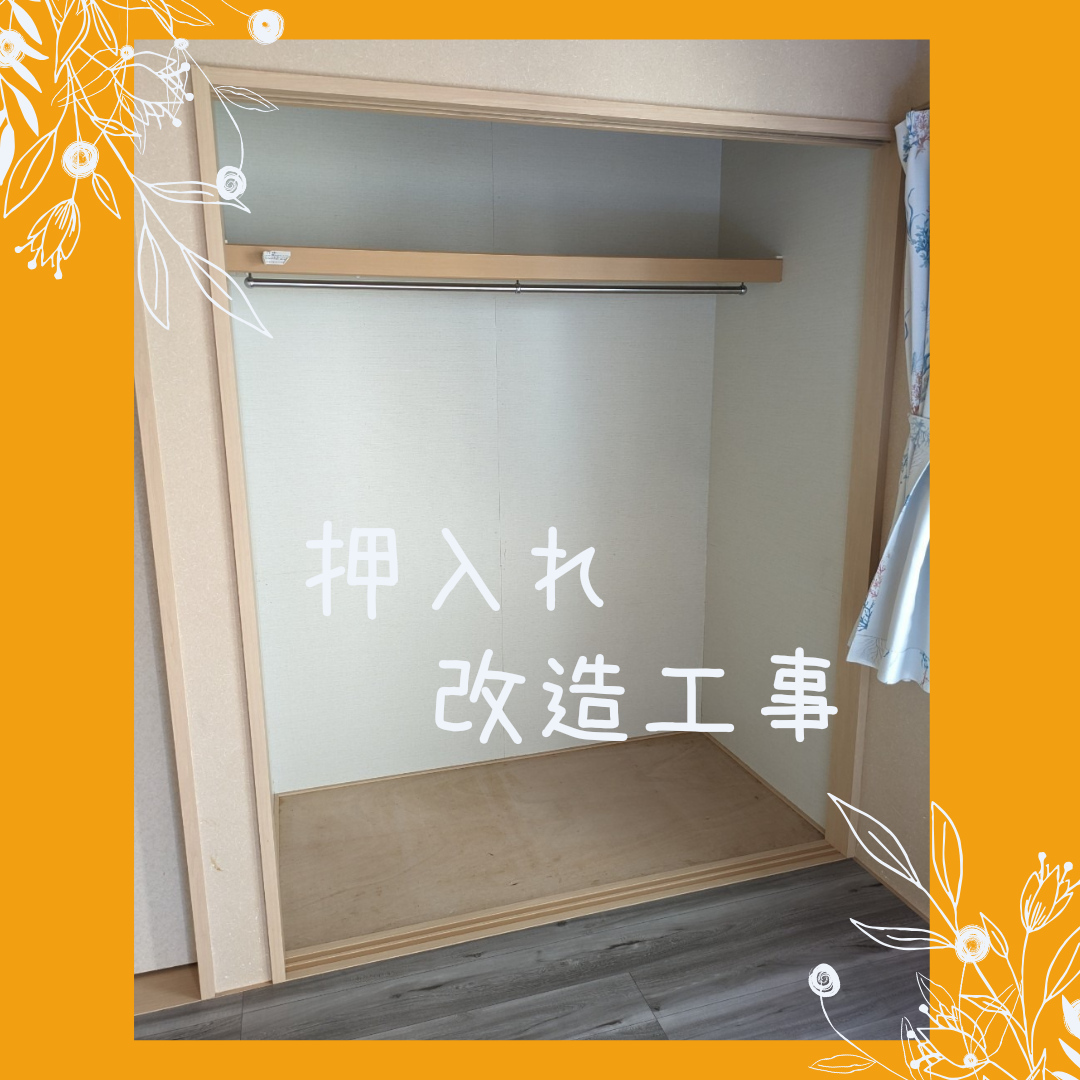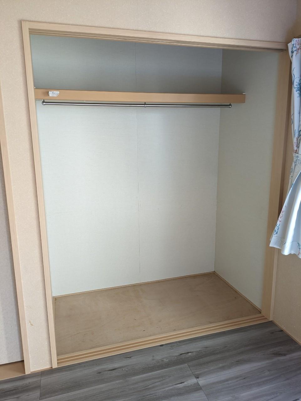 押し入れの中棚を撤去し、ハンガーパイプを設置してクローゼットにしました。 グチャグチャになってしまいやすい押入れが、洋服や小物の収納がしやすく、取り出しやすい便利な場所になりました♪