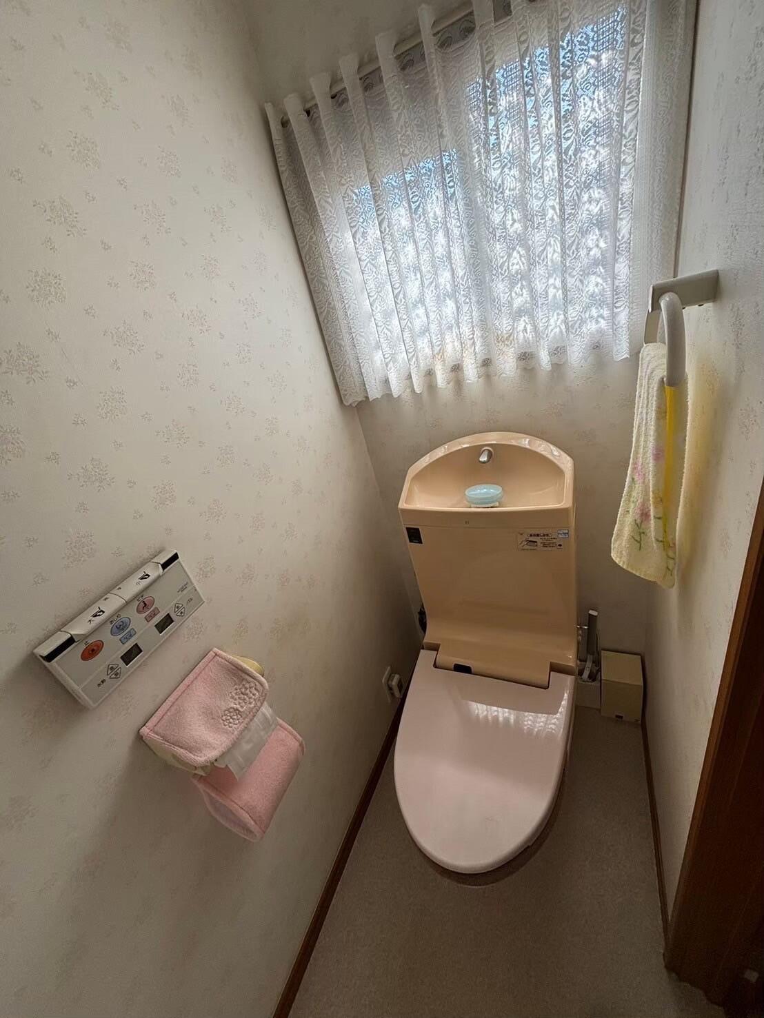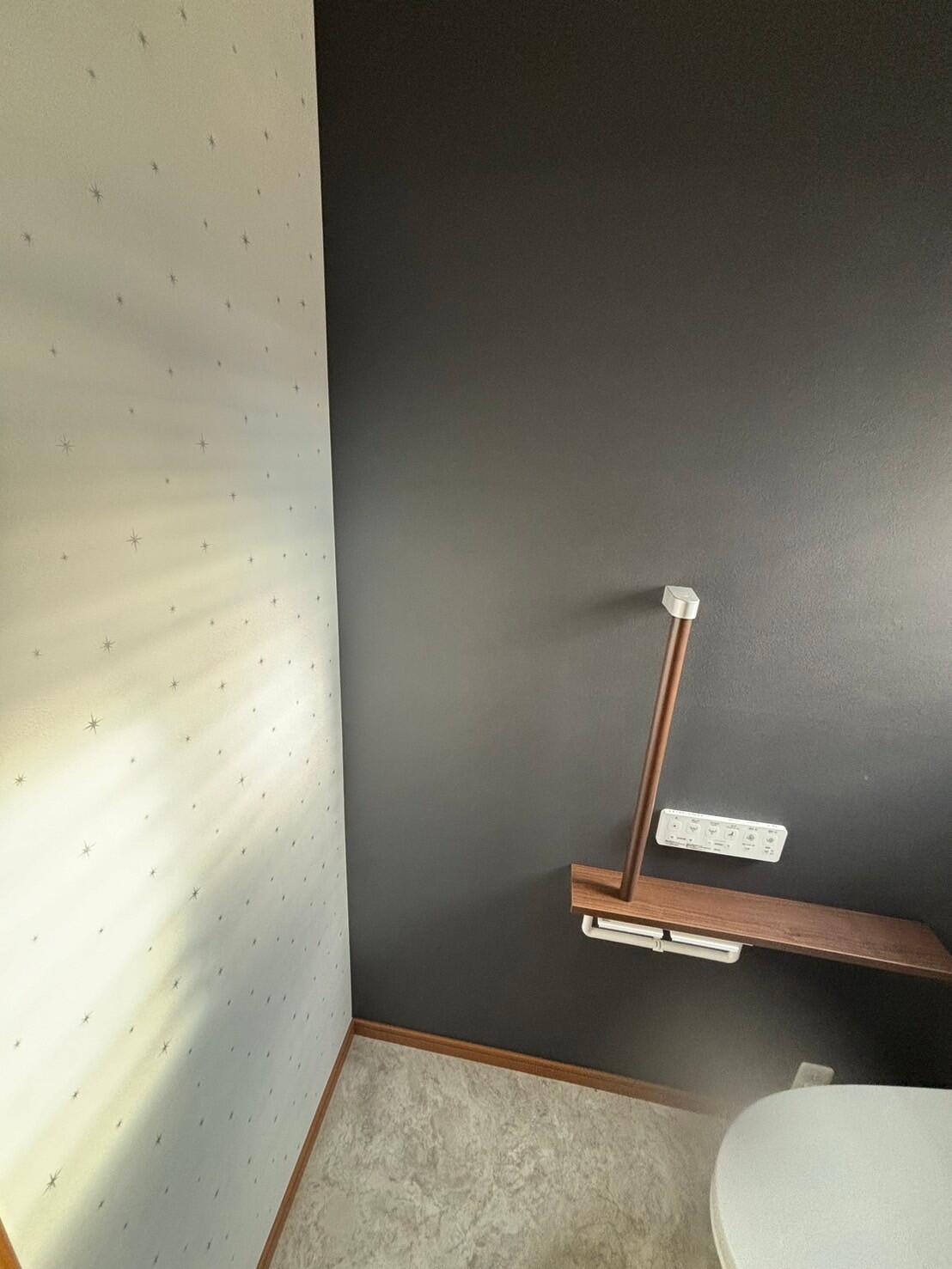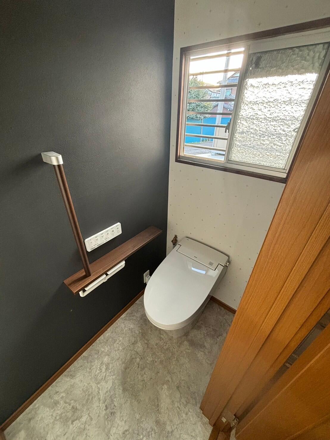 タンク付きの便器からタンクレスへ! クロスも貼り替えてスッキリとした印象に! 手すりも付いて、立ち座りも楽に♪なりました。 しかも最新機能でお掃除まで楽に♡