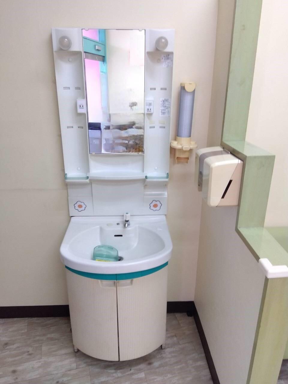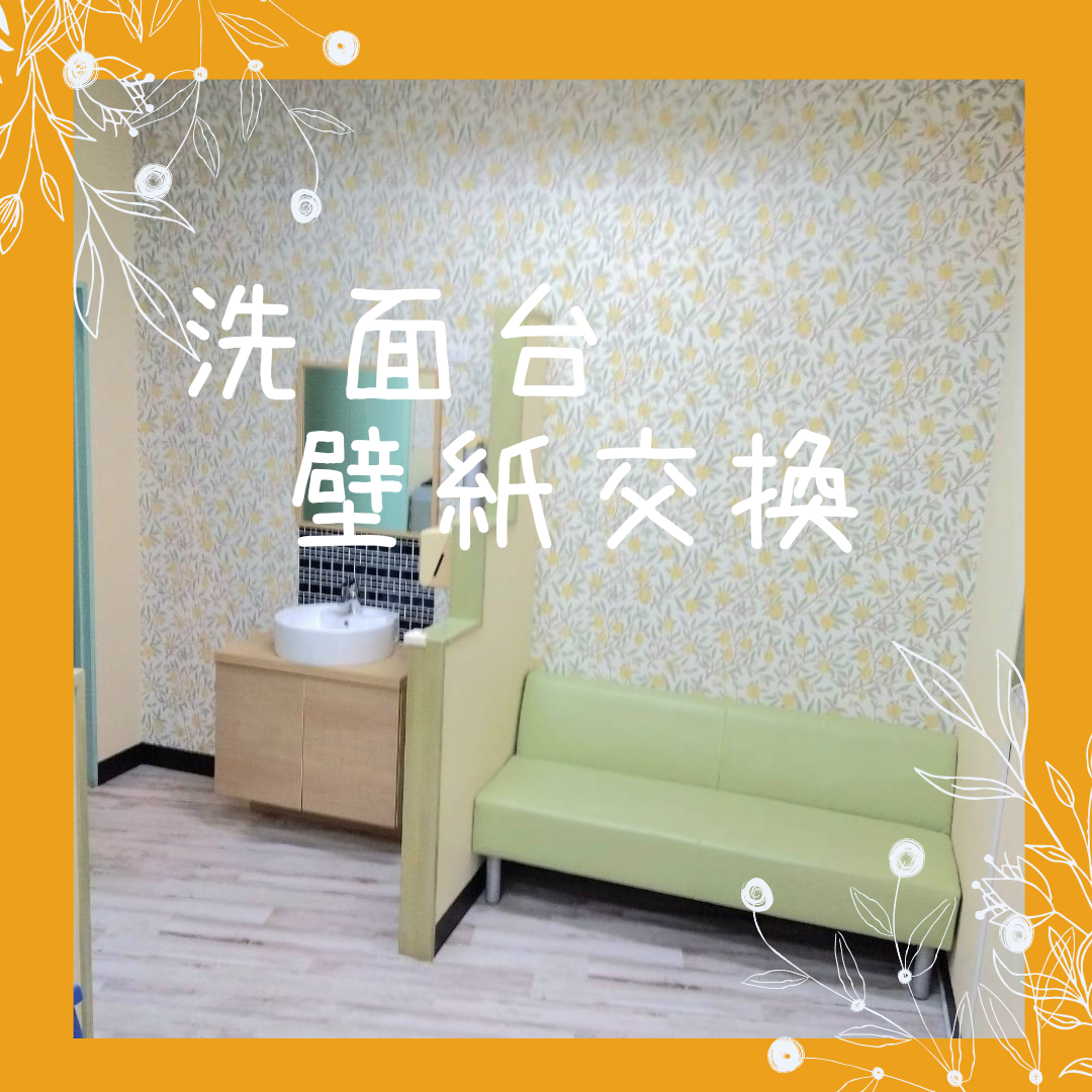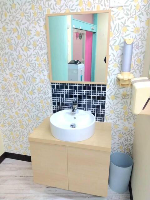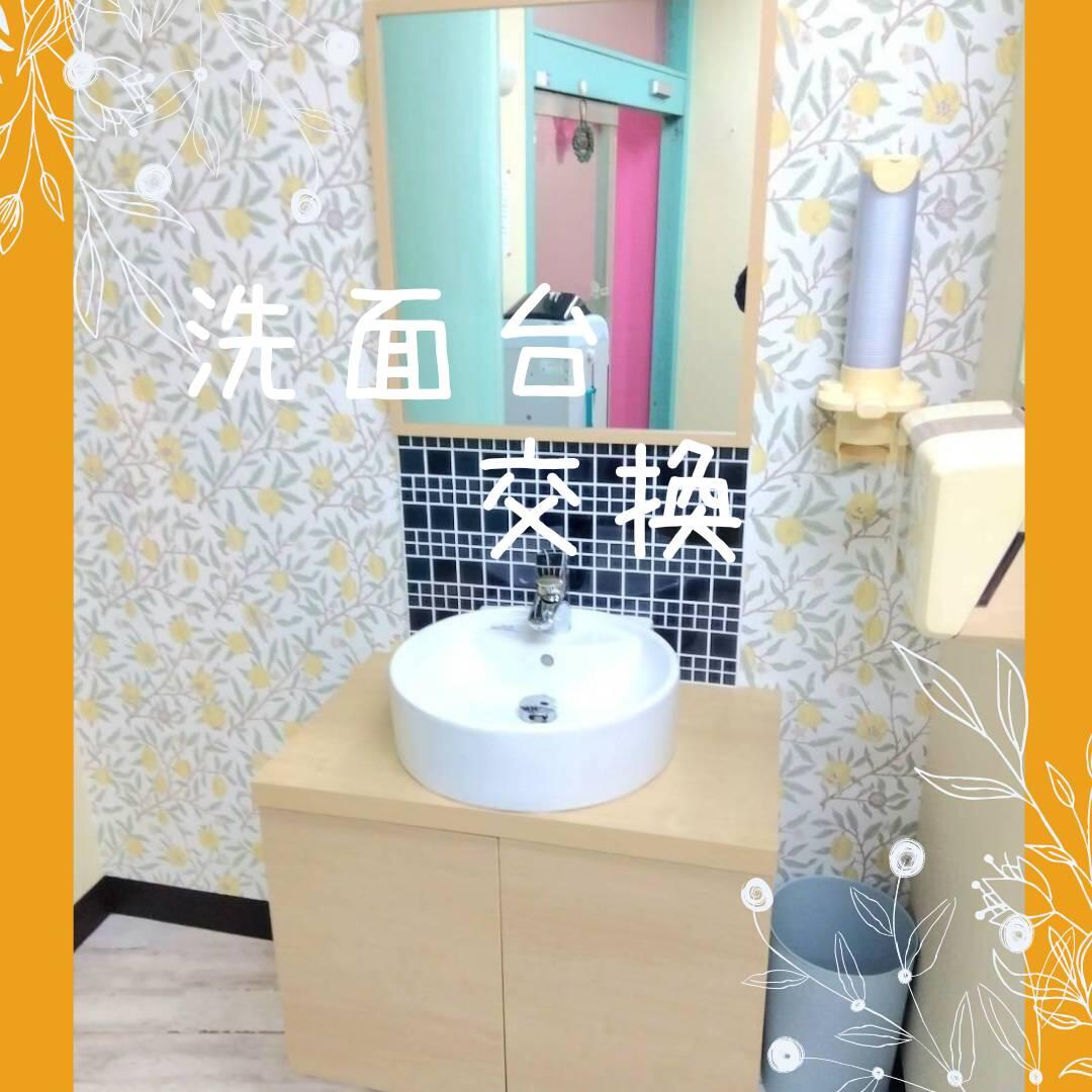 インテリアとしても映えるベッセルタイプの洗面台を設置しました。 コンパクトで家具のようなデザイン♪ イエロー系の花模様の壁紙で、お花畑にいるようなさわやかなお部屋になりました。