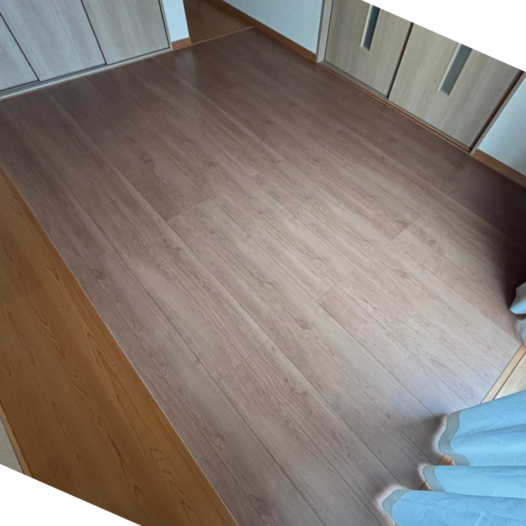 いたずら盛りのわんちゃんが、畳や壁紙をかじってしまいメンテナンスが大変! そこで、畳をフローリングに!壁紙を貼り替えて、保護シートを貼りました! 掃除が簡単になり、メンテナンスが楽になりました♪