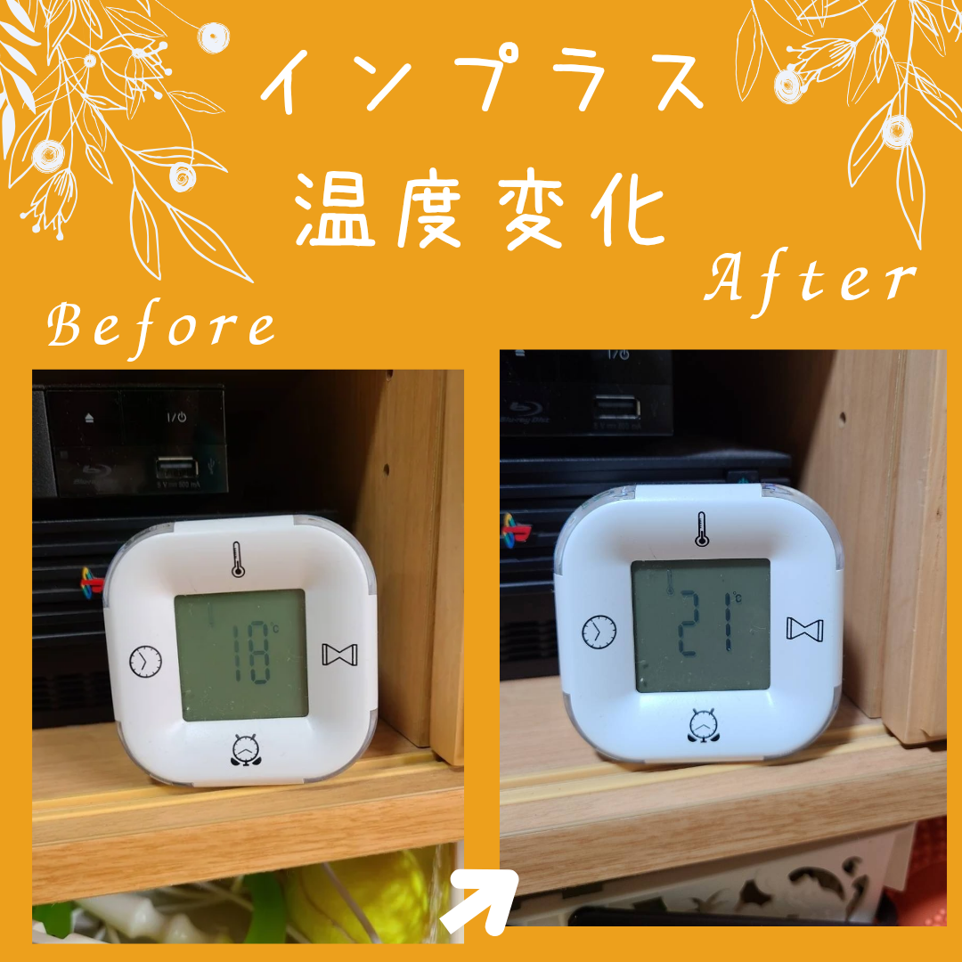 夜になると、窓側から冷気がしんしんと伝わってきて寒かったのですが、冷気を感じなくなりました。 同じ時間に温度を測ると18℃から21℃に! インプラスにしてよかった♪