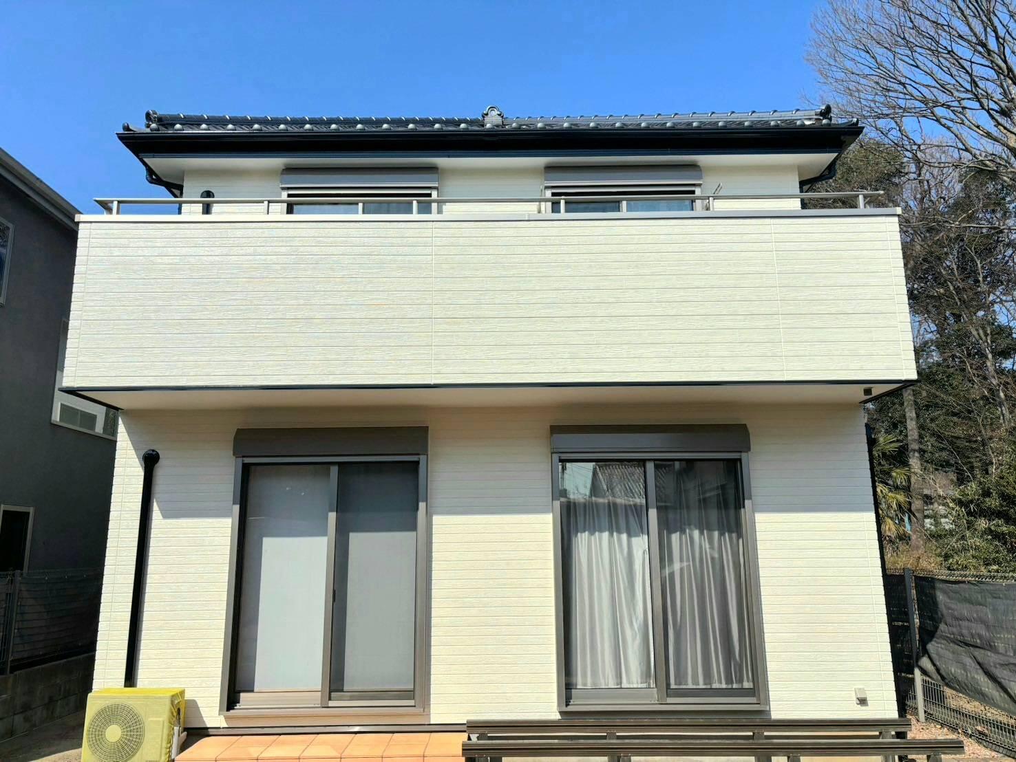 外壁塗装の耐久性は10年以上経過すると落ちてきます。 見た目はわからなくても、放置すると内側に雨水などがしみ込んで柱や土台を腐らせます。 ぜひ、定期的なメンテナンスをしましょう! 濃いグレー系からオフホワイトに大きくイメージチェンジ! 白系の色は、太陽光を反射しやすく、外壁の表面温度の上昇を抑えるため、熱劣化を防ぎます。