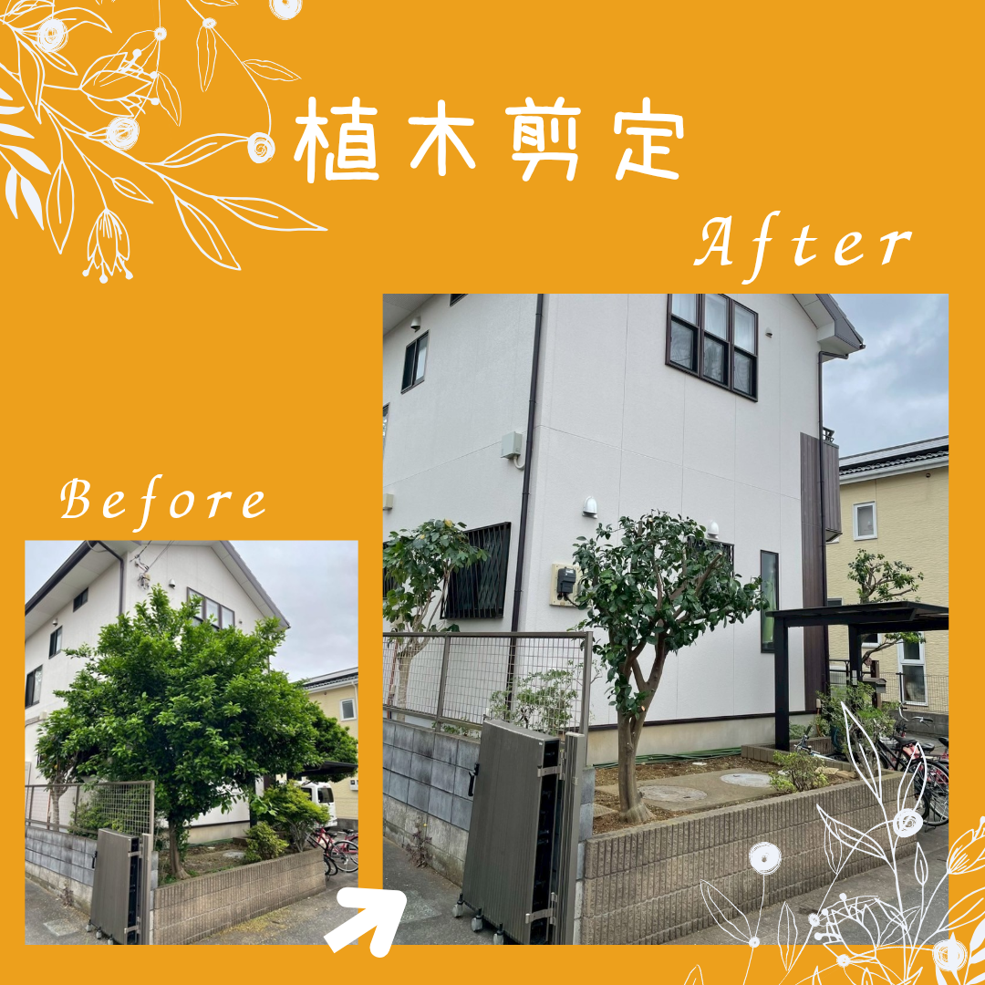 大きくなり、道にはみ出した樹木の剪定をしました。
