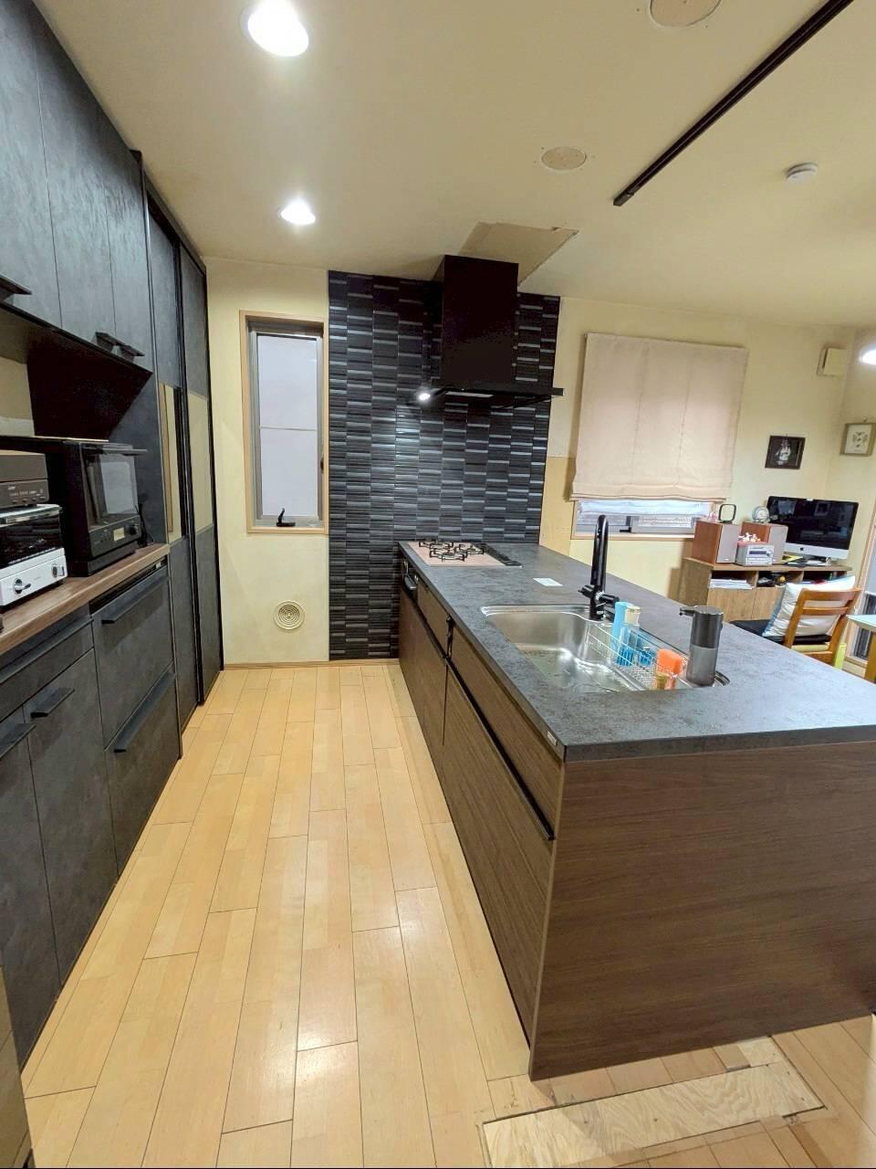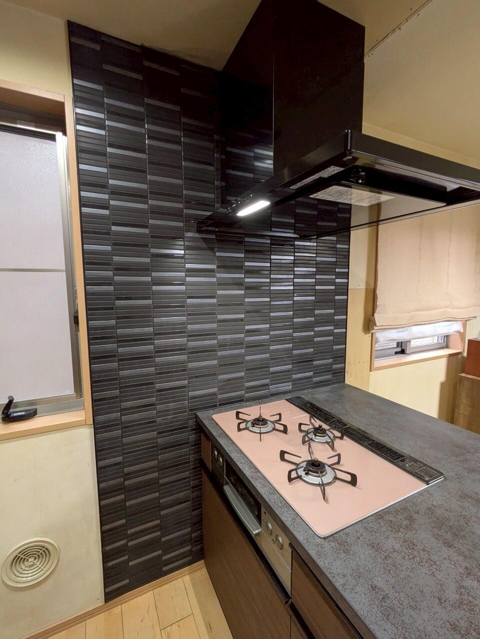 LIXILの「リシェル」は高級感があってカッコイイ! 壁には光沢感の異なるタイルを織り交ぜたインテリアモザイク「ルンゴ」を設置。 スタイリッシュなモノトーン系の色合いで落ち着いた印象です。 全体的に、大人気のトレンド「ダーク系トーン」でまとめました。 カウンターは熱にも、キズにも、汚れにも強い!セラミックトップです♪ 大容量の背面収納で、使い勝手も抜群です♪