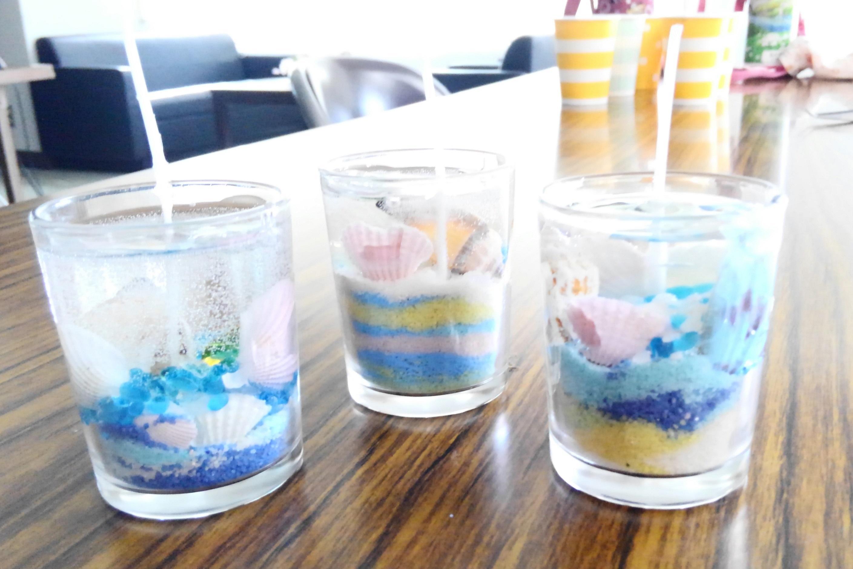 そしてその上には様々な形や色の貝殻を配置し、熱したジェルキャンドルを注いで待つこと15~20分ほど。1つ1つ個性のあふれる芸術作品ができあがり、みなさまとても満足げなご様子でした♪