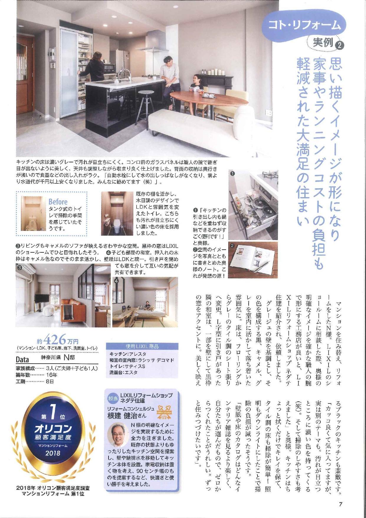 毎年行われるLIXILの写真コンテストで選ばれ、年4回発行のLIXILリフォームショップの小冊子にネダテ住建のリフォーム事例が掲載されました。