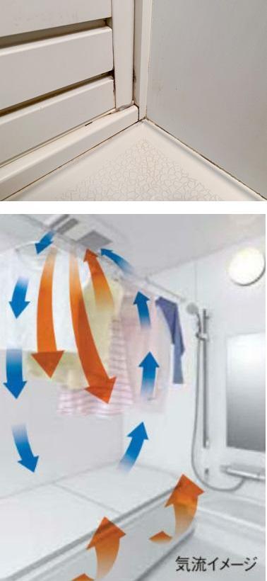 お風呂のカビをどうにかしたい!!とお考えでございましたら、乾燥機を「浴室換気乾燥暖房機」に交換してみてはいかがでしょうか?浴室内の乾燥にとどまらず、洗濯物の乾燥もできますので、共働きのご夫婦様などにもおすすめです!