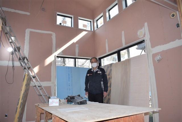 写真は建築中の自宅兼モデルハウスのリビングです。