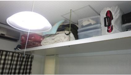 ☆半年前にリフォームした部屋に巾広の棚を作って、さらに広く使いたい。☆【作業内容】強度を補強するために、天井に点検口を設置し、天井裏の強度の取れる部材から補強ボルトを吊る。さらに棚を乗せる受けを取り付けるビス止めの下地を探しながら施工。上部が新設した点検口60㎝。 ☆「 部屋がこんなに広く使える」と喜んでいただきました。