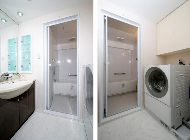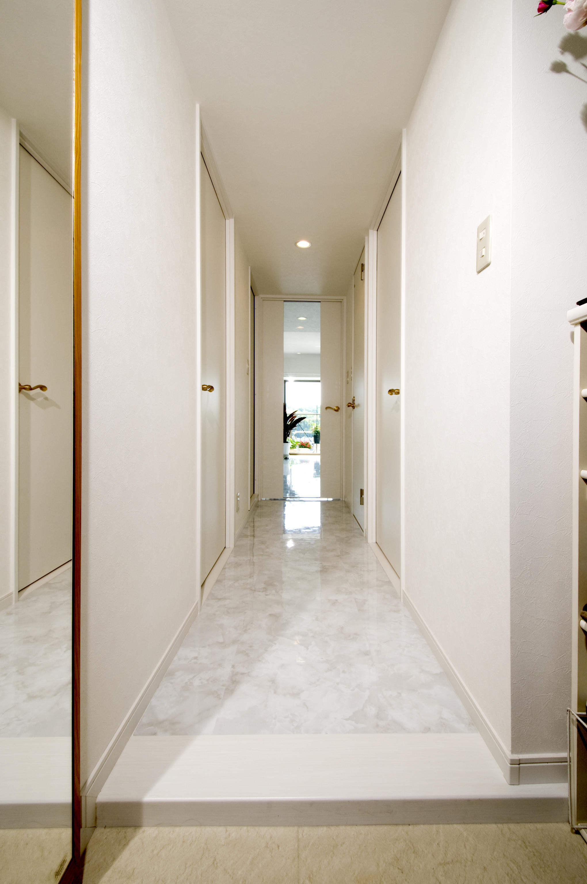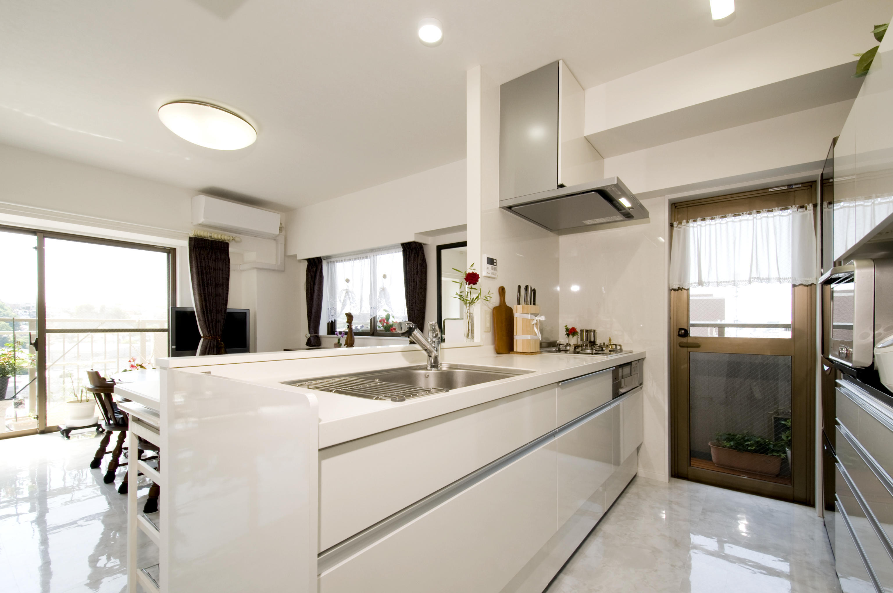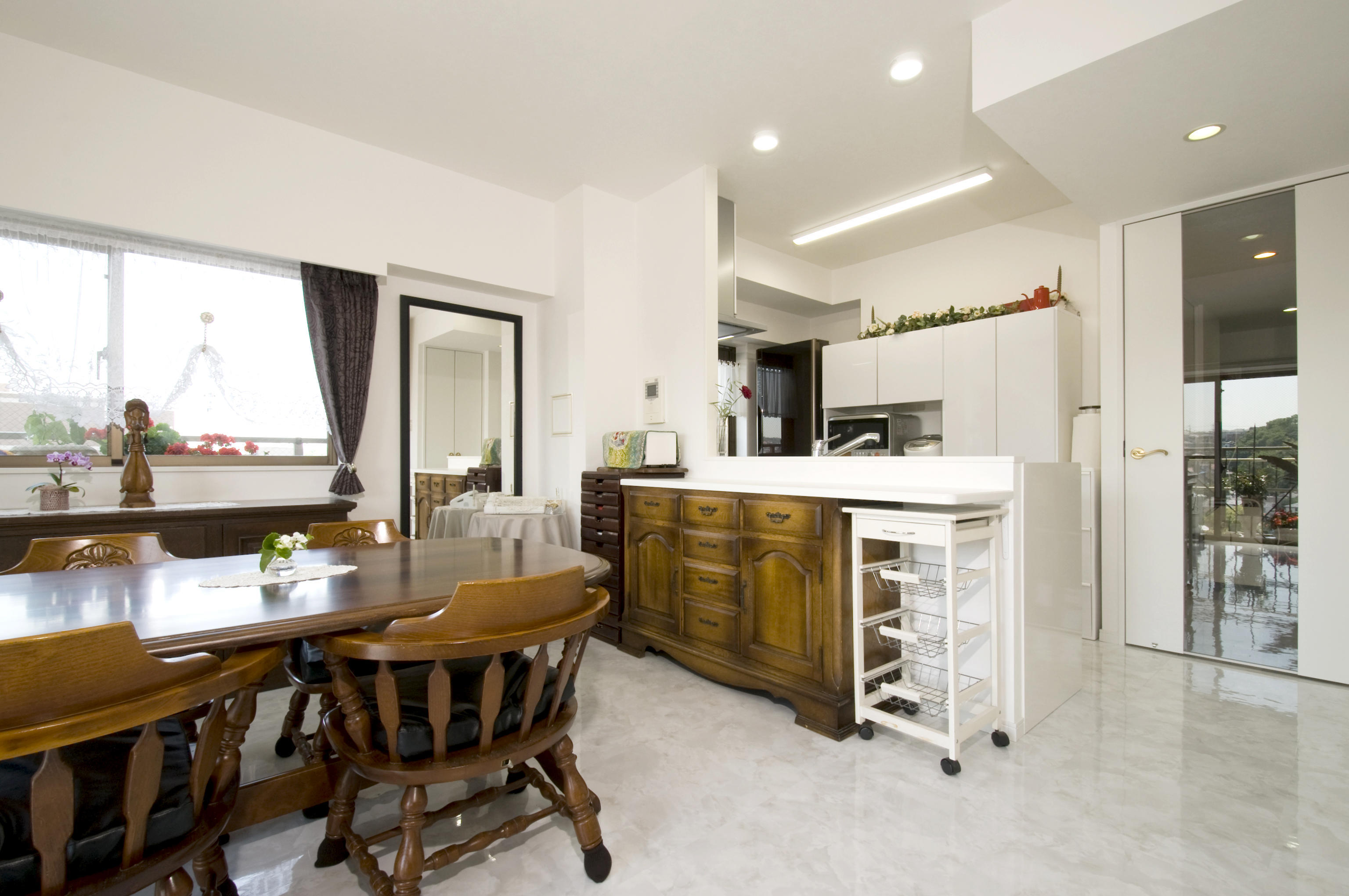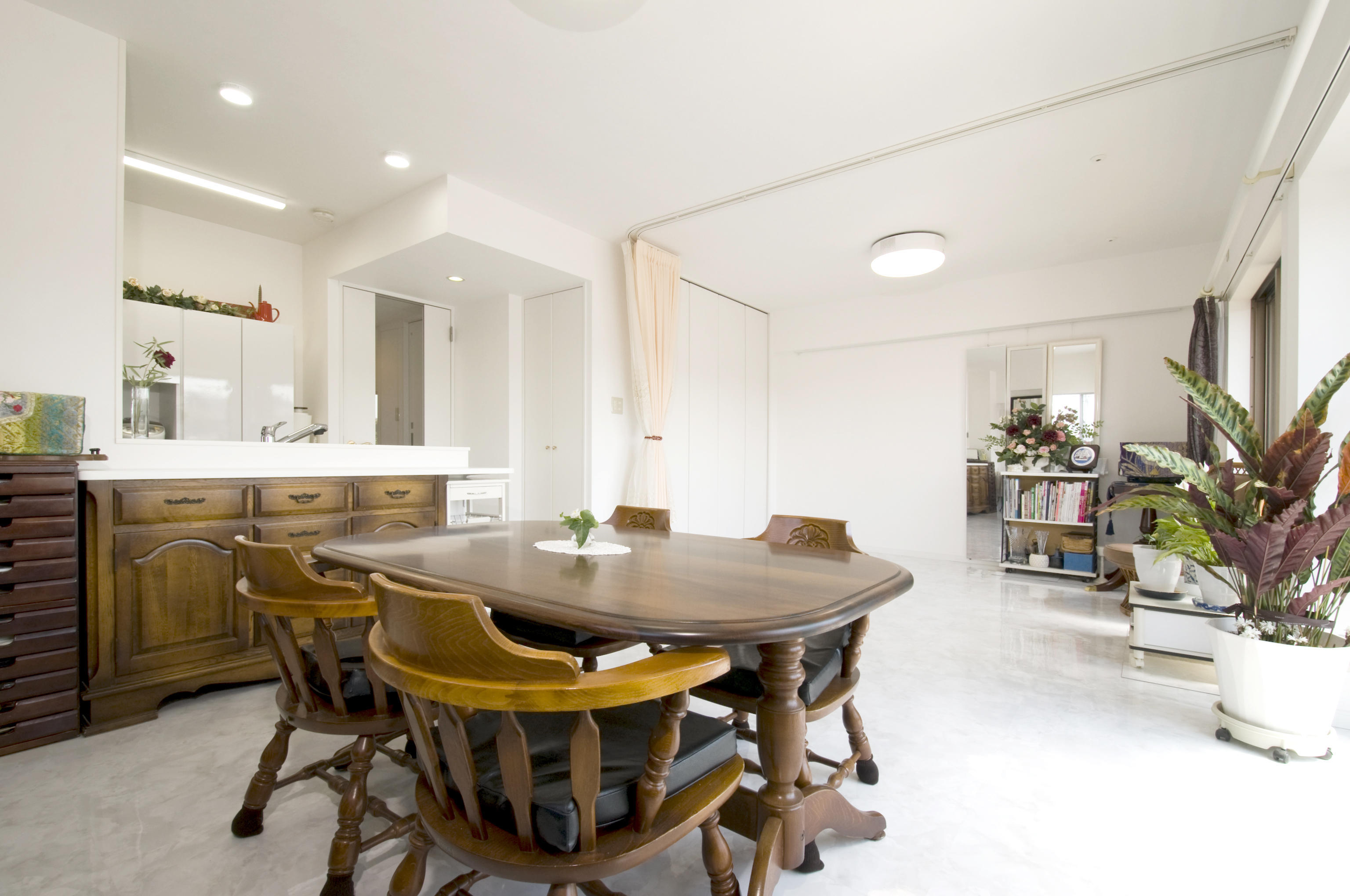 【施主様のリフォームのきっかけは?】 夫婦二人暮らしになり、動けるうちに断捨離をして、地震にも強い家にしてもらうことを決意。ちょうど洗濯機が壊れてしまい、家電の寿命時期にもなってきたので思い切って実行。残りの人生、すっきりきれいな家で暮らしたい。。。というのがきっかけです。 (ご条件) ・予算内で(大枠) ・白いドアとゴールドのドアノブ ・和室とリビングの壁を取って、光と風の入る空間 ・キッチンが狭かった(一人入るといっぱい)ので、家族全員(料理好き)が参加できるように ・ヨガなど、軽く体を動かせるスペース ・バルコニーのたくさんの花が見えて、毎日生けられる ・玄関の下駄箱(マンション用)を撤去して、大きな花瓶が置けるように。 ・子供たちが帰ってきたら泊まれる部屋に変更できる ※古い思い出の家具は再利用 ※収納を最小限にして、とにかく断捨離 ■工事を終えて■ 住みながらの工事で、大変助かりました。工事中でも細かな想いが伝えられて、仕上がりに大満足しています。