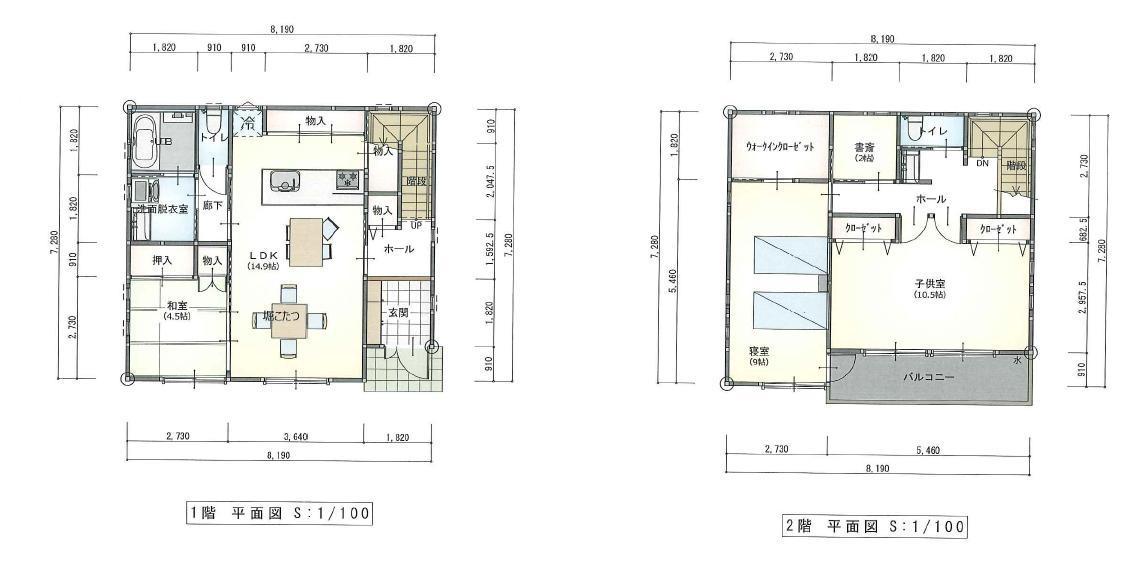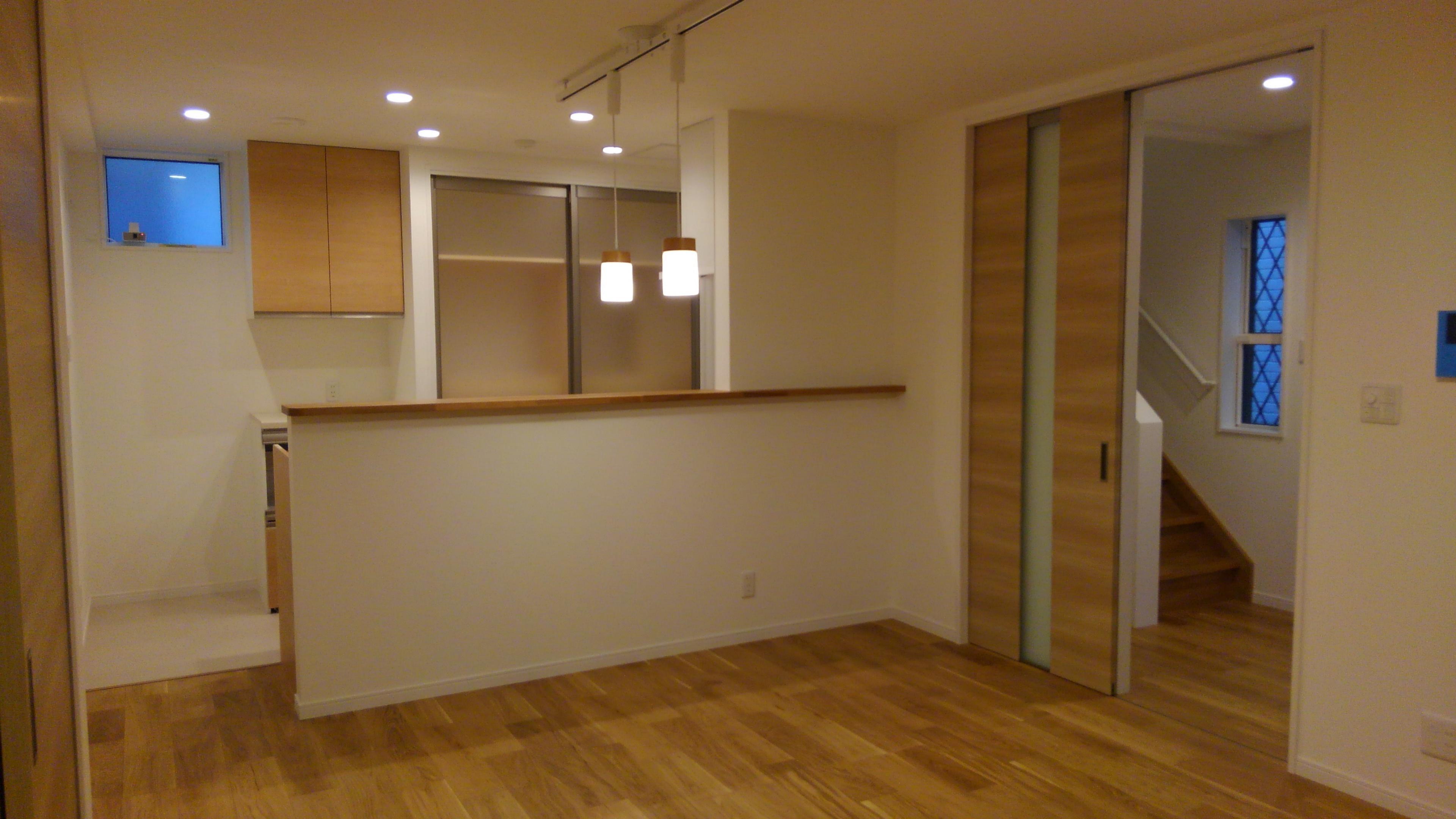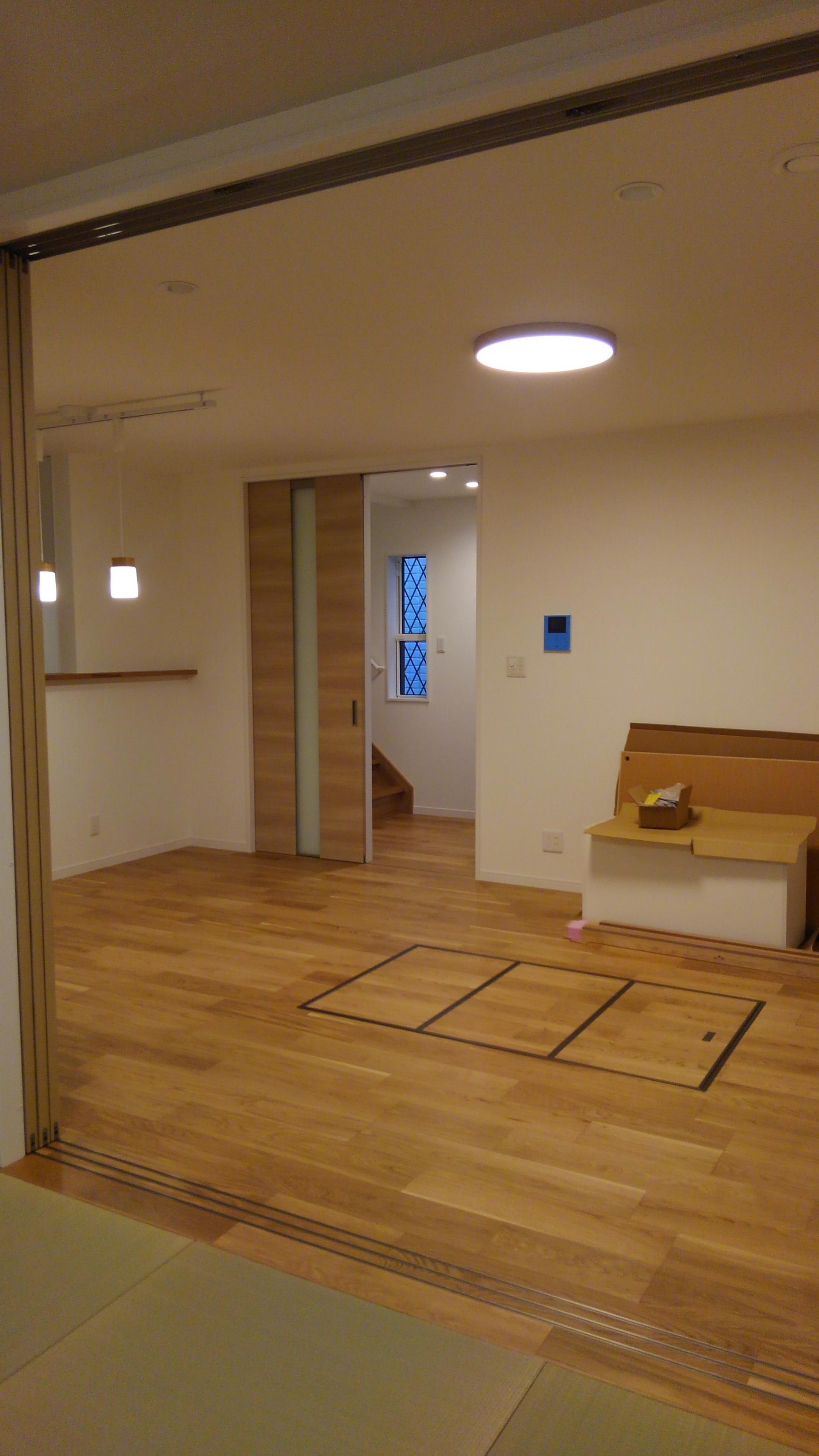 ★ポイント★・白と木目を基調としたシンプルで温かみのある内装。・掘りごたつで冬は暖かく快適に。・子供部屋は将来2つに分けられるように設計。・階段下を収納にして有効活用。・ご主人様の書斎は、今お持ちの机をご使用になられたいとのご要望により、室内の色も机の色に合わせました。・高気密高断熱で夏涼しく、冬暖かい家に。
