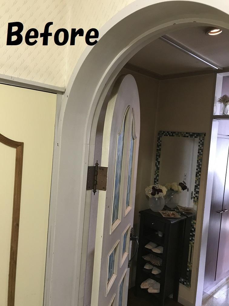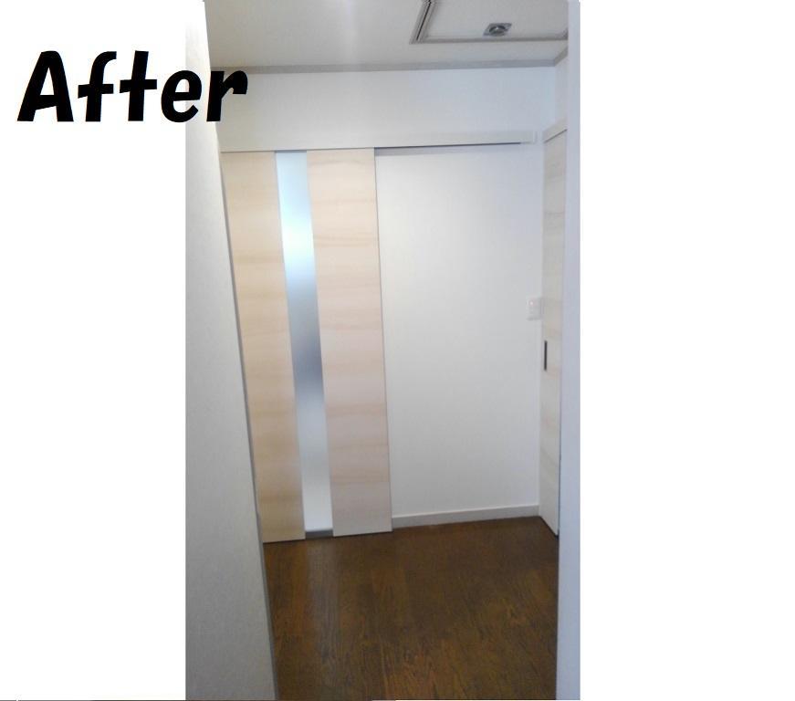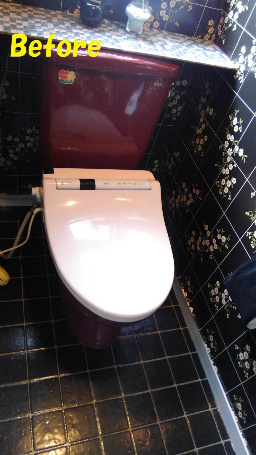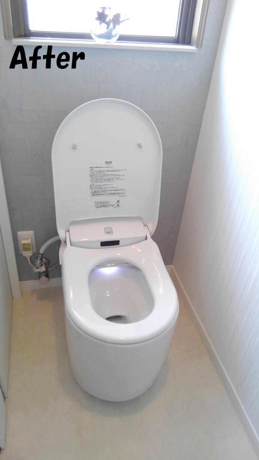 【ポイント】☆便器がワインレッドで健康チェックができないため交換をご検討。☆LIXIL横浜ショールームでご覧いただき一目で気に入られた「グローエ」のトイレにお決めいただきました。☆4部屋への出入り口が集中する小ホールの開き戸が長年の悩みの種でしたが、引き戸(LIXIL:ラシッサ)に変えることで導線がよくなり、大変ご満足いただきました。