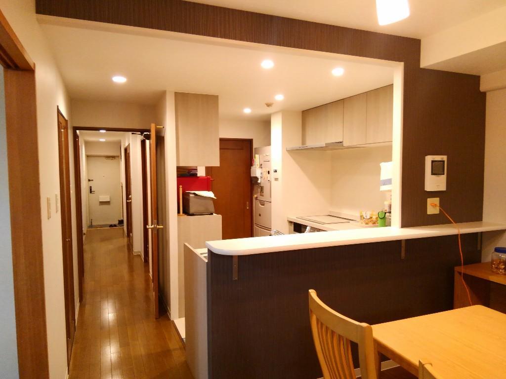 ☆新築マンションや雑誌の写真を参考にされ、キッチンカウンターの壁をアクセント貼りに。照明もキッチンをダウンライト、ダイニングをスポットライトに変更し、とてもスタイリッシュな空間になりました。