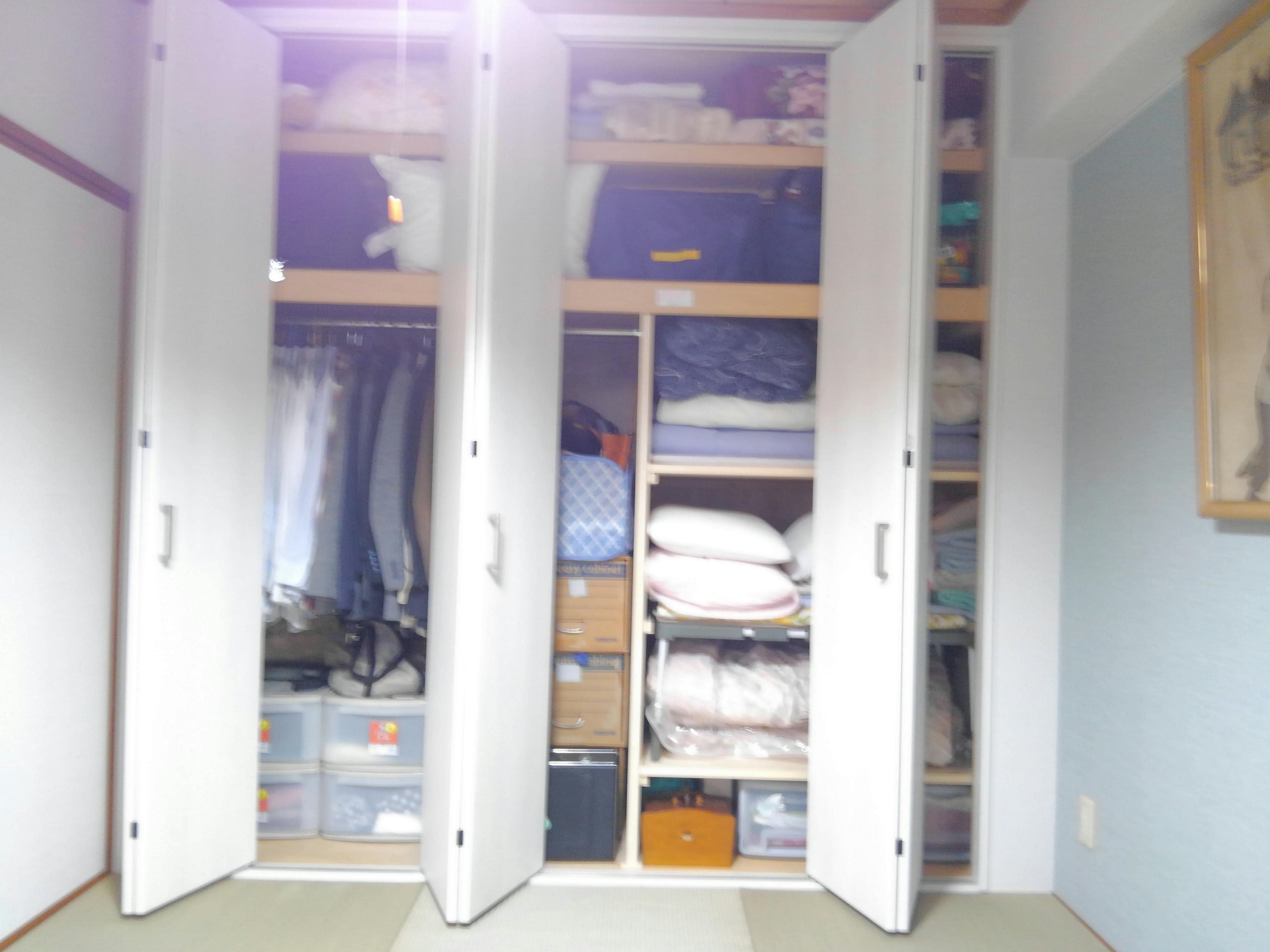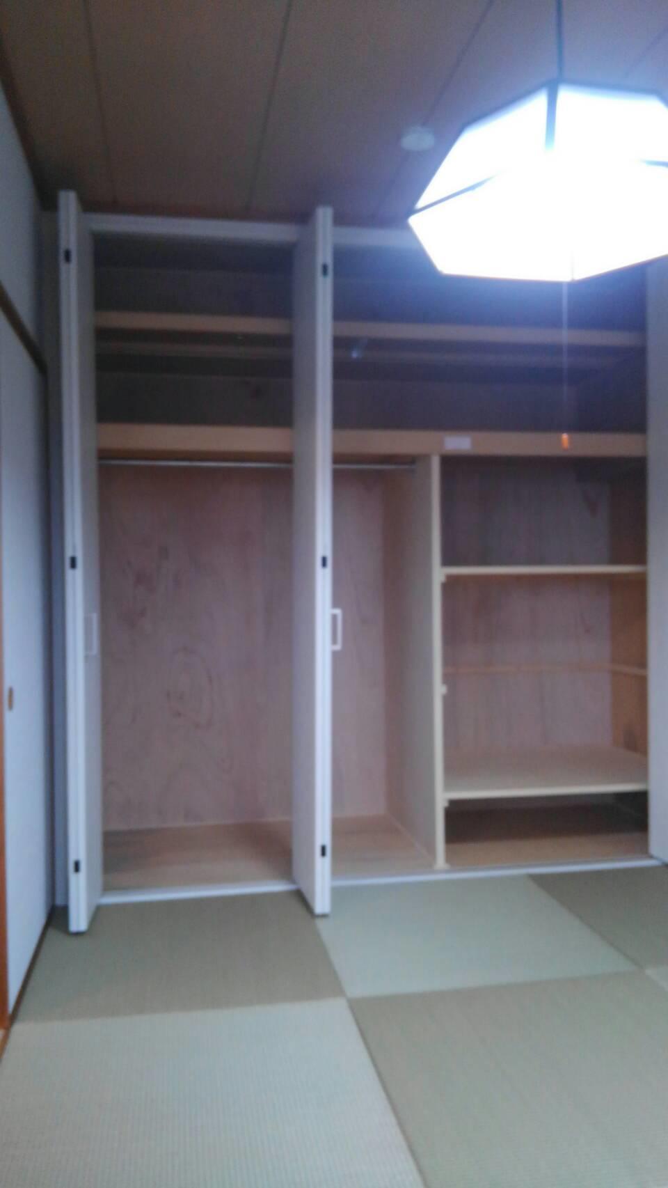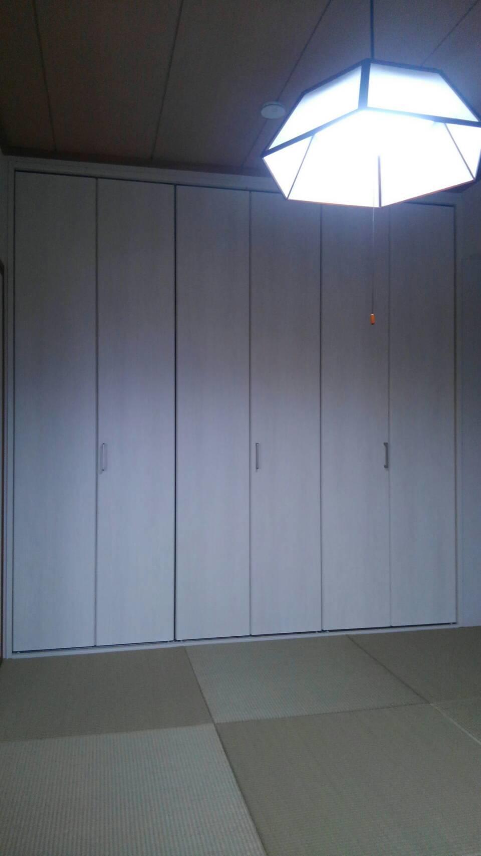 ☆和室押し入れをクローゼットに。収納内はご要望に沿って造作し、いろいろな形状のものが無駄無く収納できるようになりました。 ☆畳を琉球畳に変更し、和室でありながらもモダンな雰囲気に。