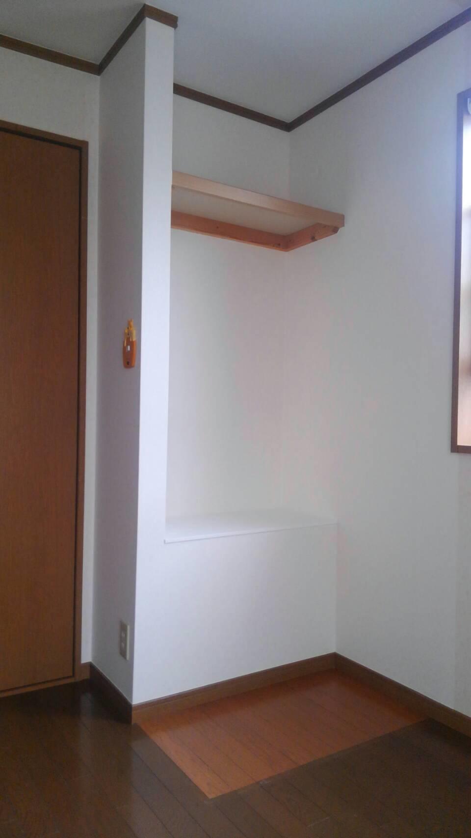 ☆ベッドの向きを変えるため、半間の押入の奥行を半分にし、部屋を広くしました。