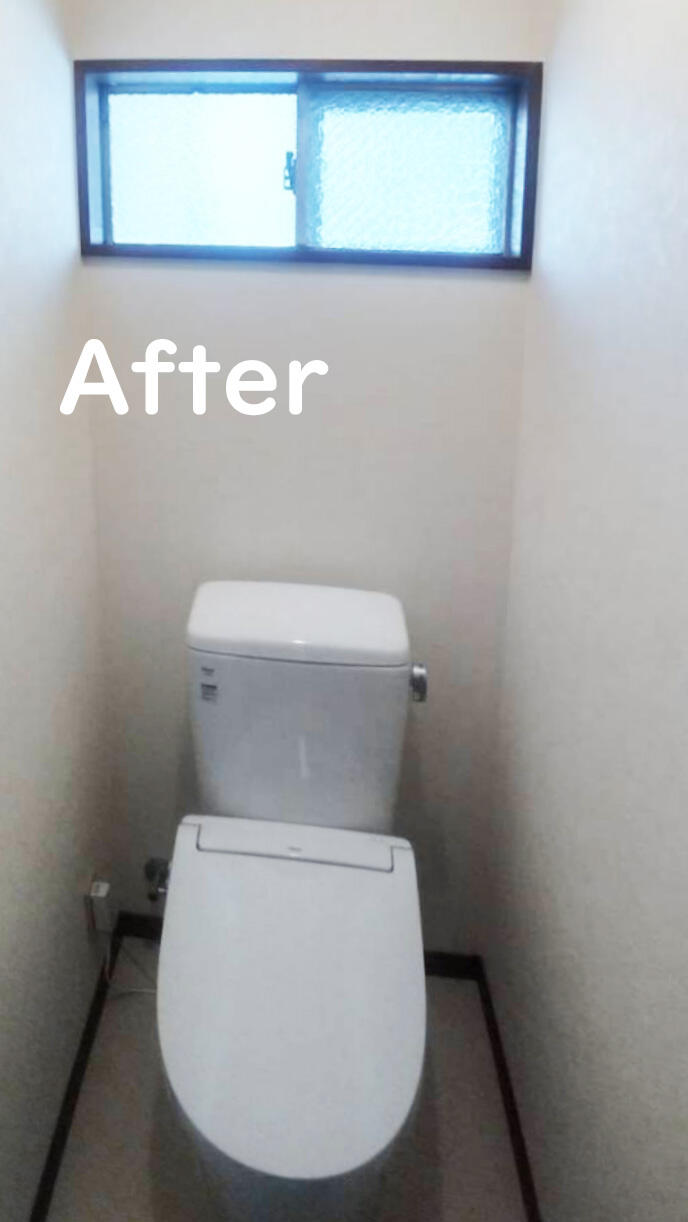 トイレ交換:LIXIL「アメージュ」へ変更し、床もクッションフロアでフラットに仕上げ、安心して使える空間に