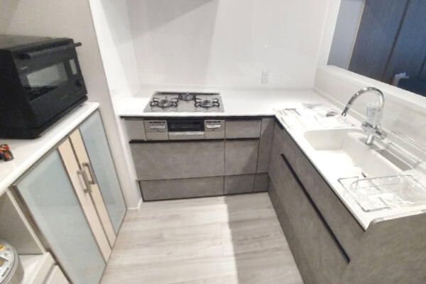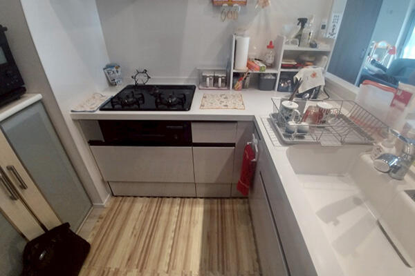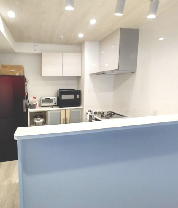 また、キッチン前のカウンター(袖壁)は手元が隠れるようにしたいとのご要望から、20cmの袖壁を新たに造作。