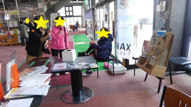 二重サッシやリフォーム用玄関ドアの展示に加え、「しゃもじ卓球」のゲームも用意!!大会とは別に、笑いに包まれたゲームが繰り広げられました☆