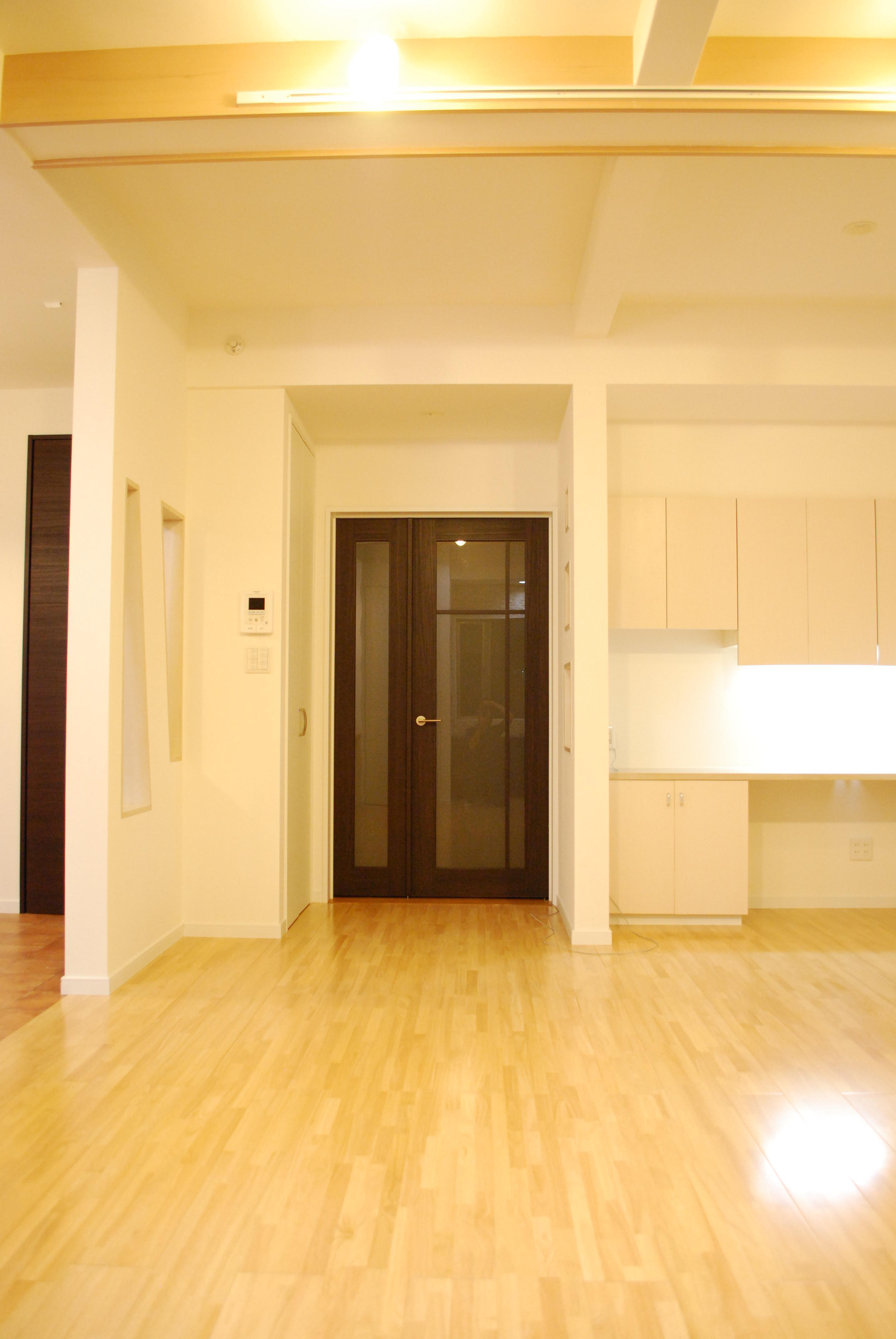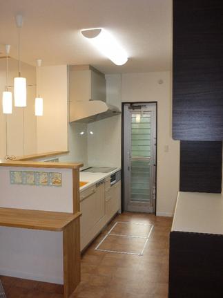 リビングとダイニングの間に壁を一部設けどちらにいても落ち着けるスペースに。 生活動線を見直し、奥様憧れの対面キッチン。強度不足がありましたので、耐震補強工事も行いました。