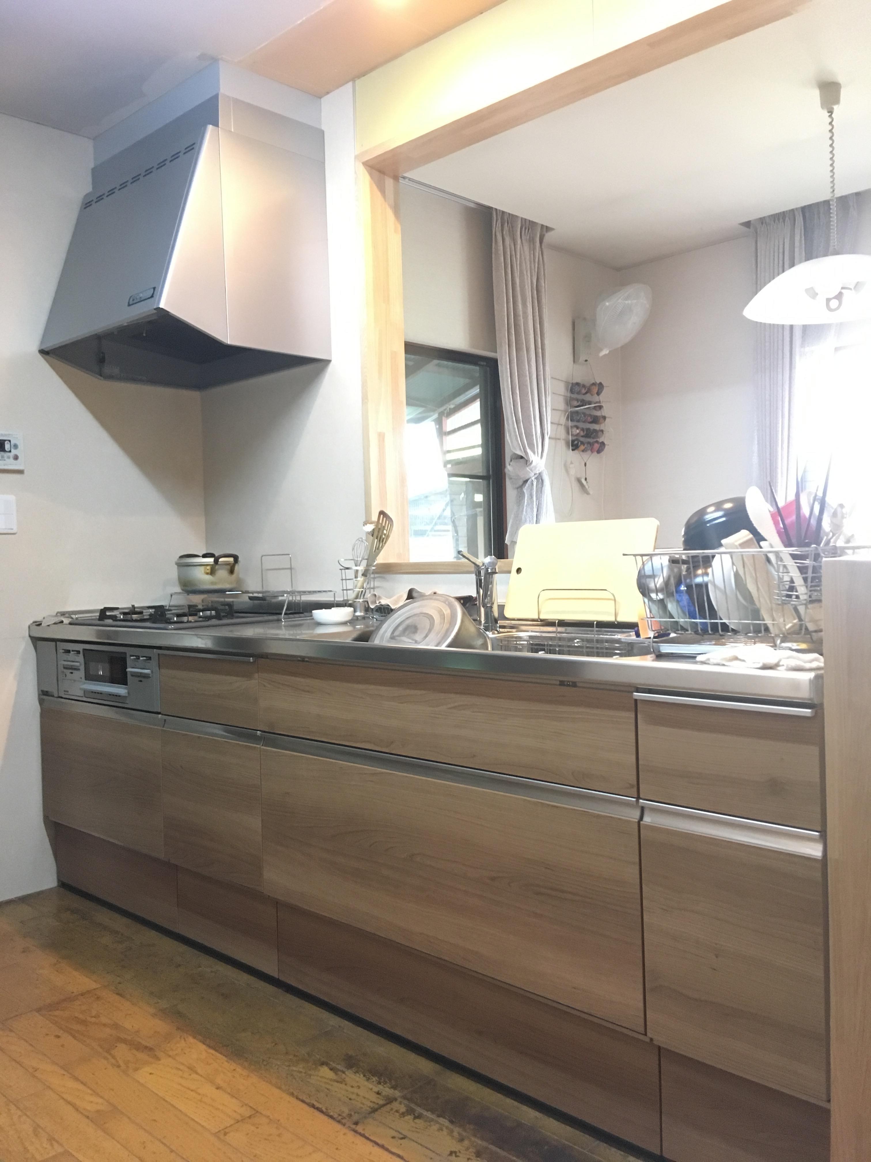 築25年のお宅の水廻りのリフォーム。吊戸棚を撤去して、目の前がすっきりして見通しの良い対面キッチンに…。