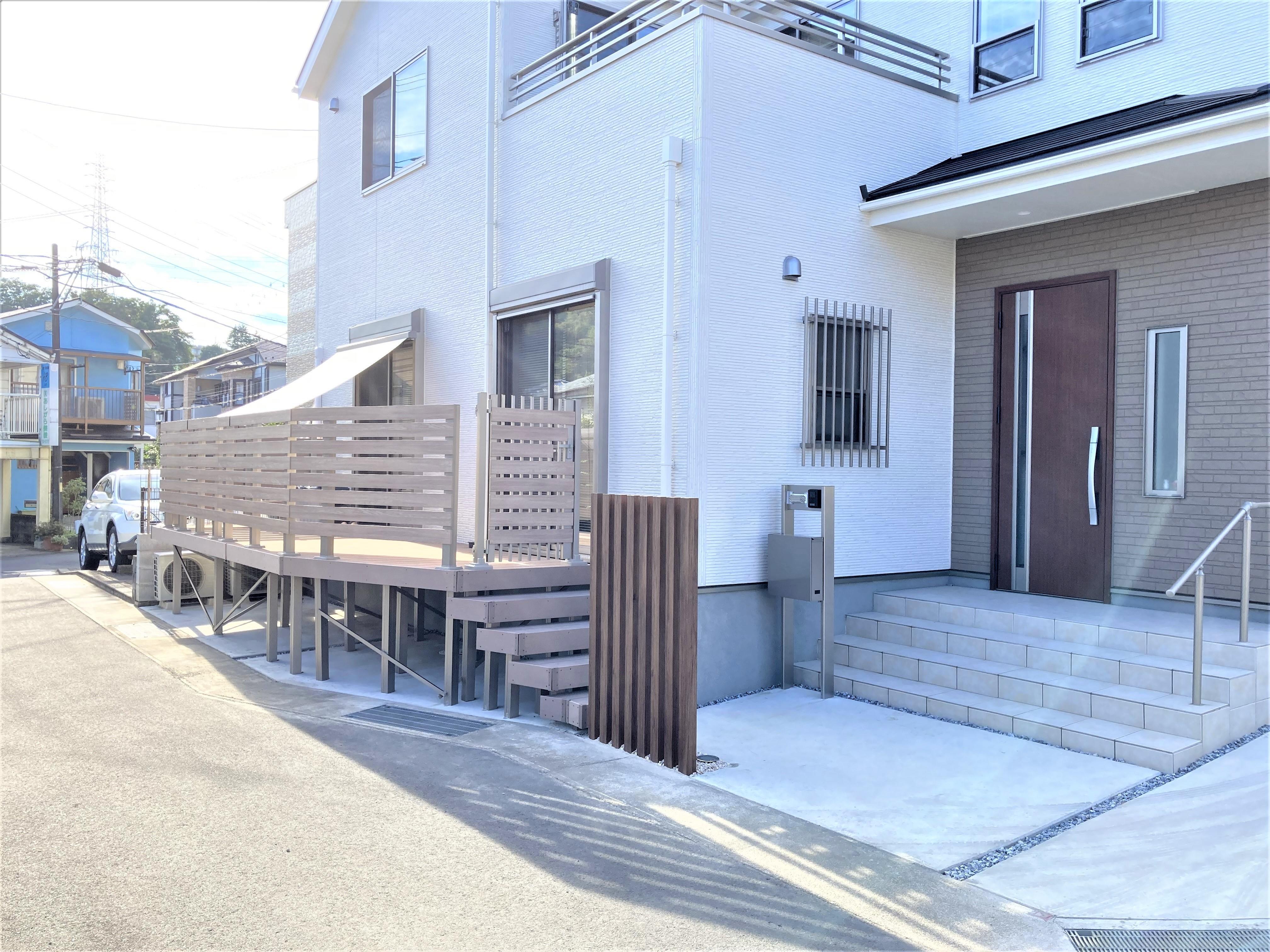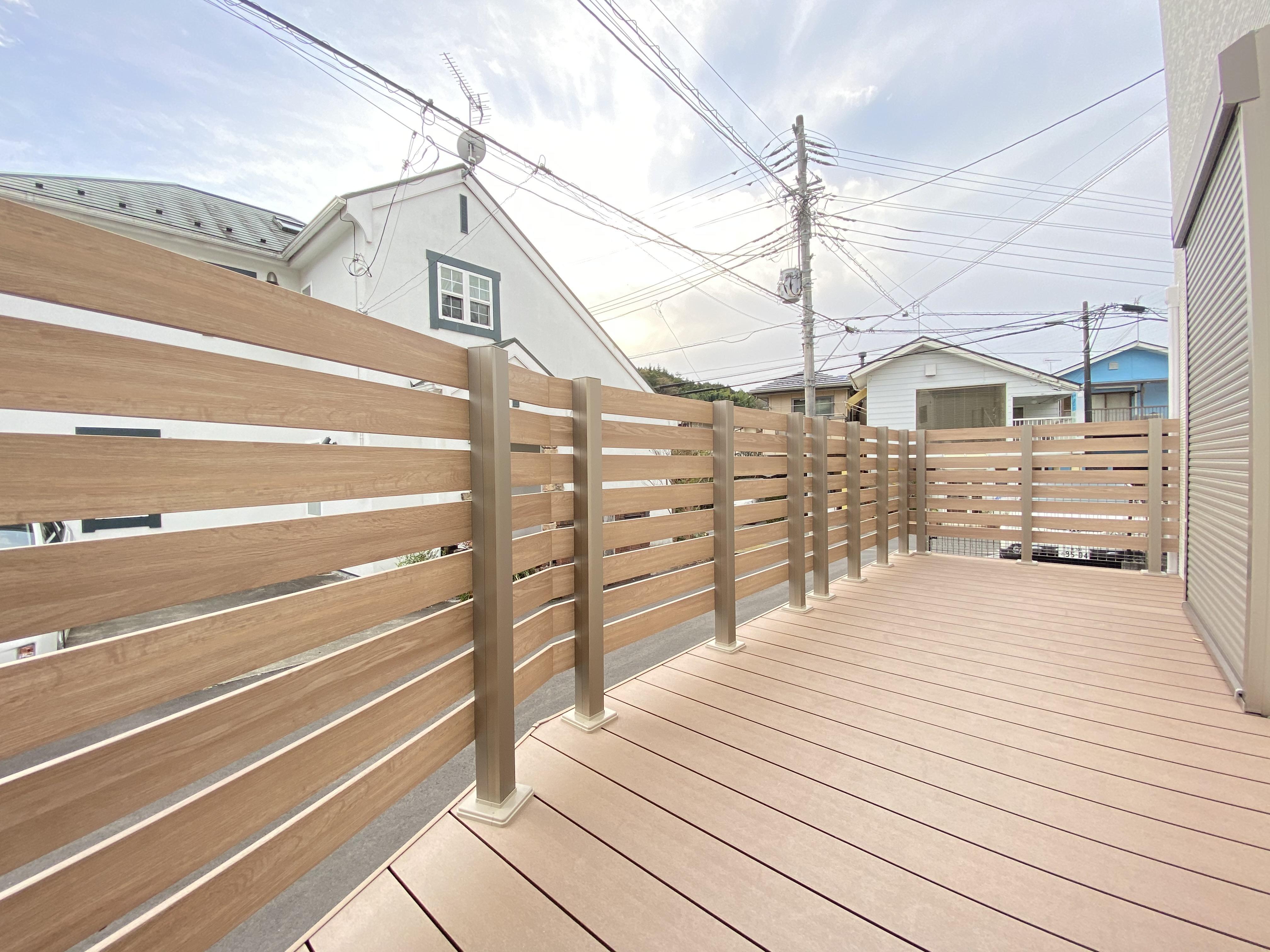 ウッドデッキと面格子で、風を感じながら、プライバシーも守れます。