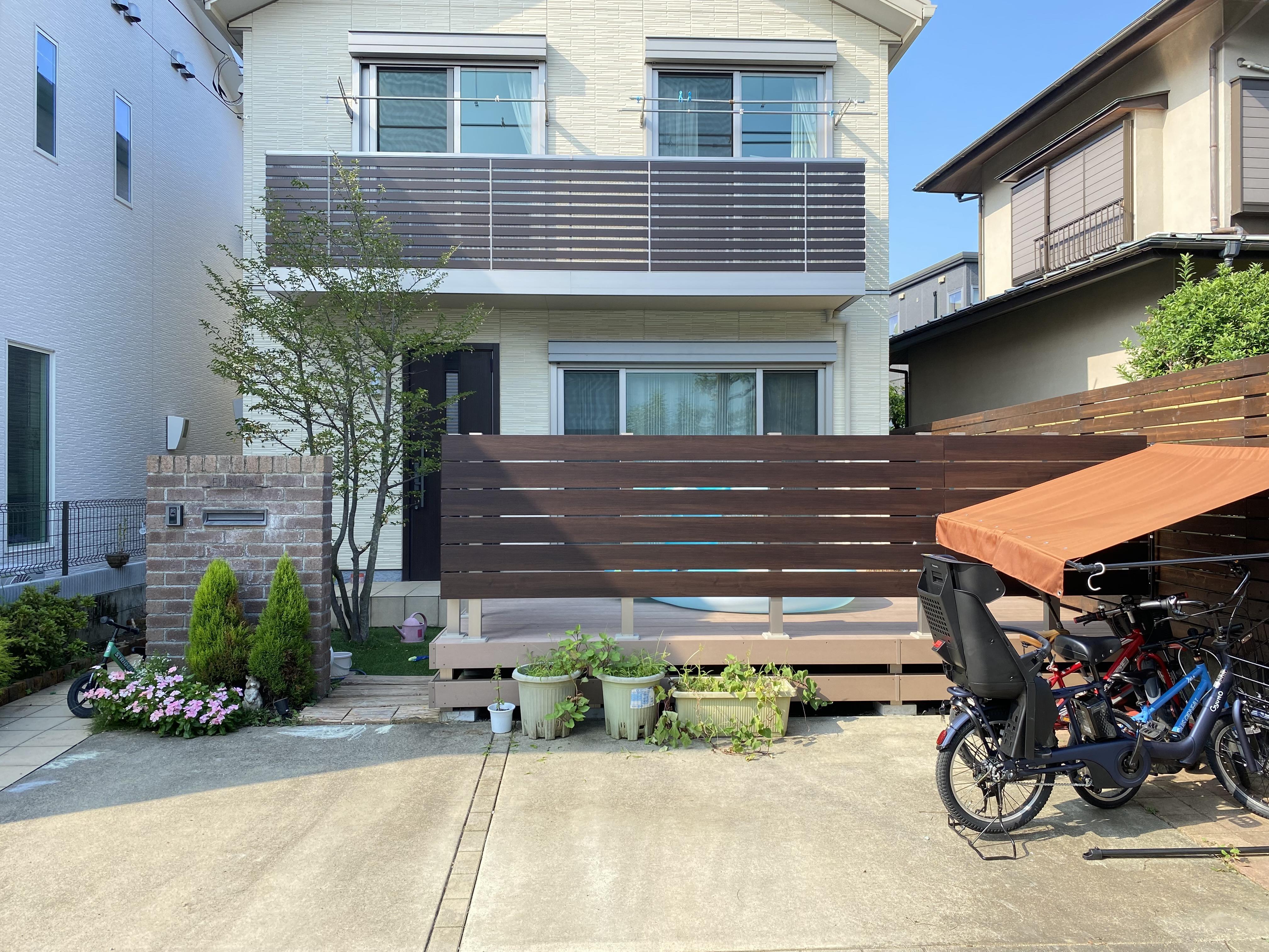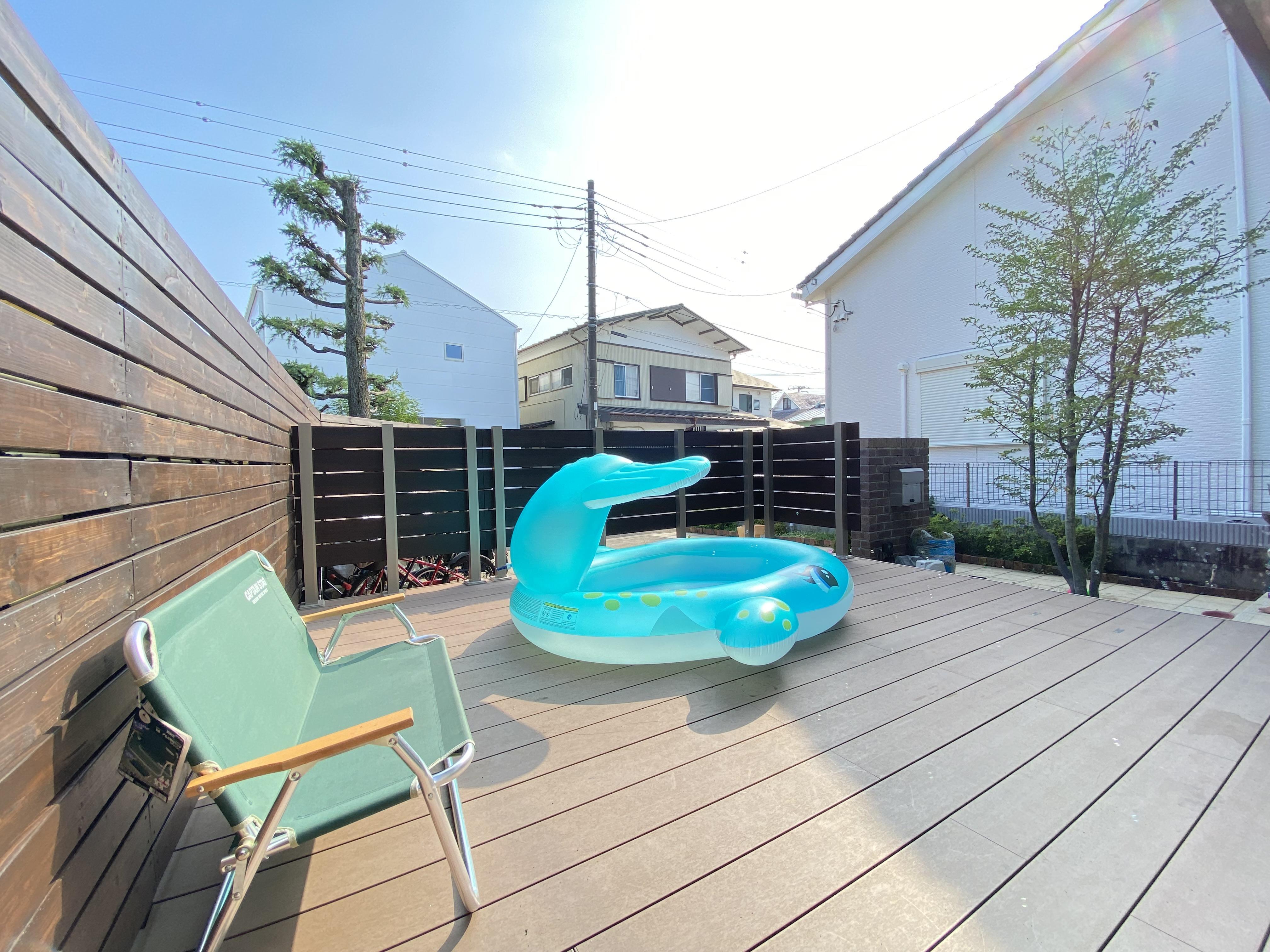 小さなお子様と一緒に遊べるウッドデッキを設置しました。 人工木なので、劣化を気にせずメンテナンスもカンタン!