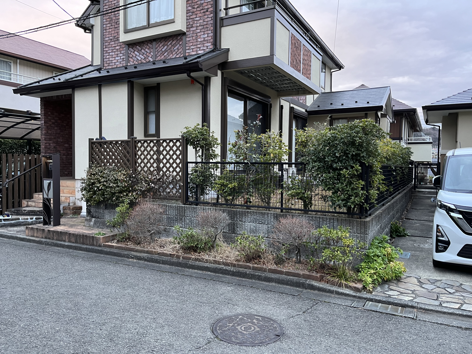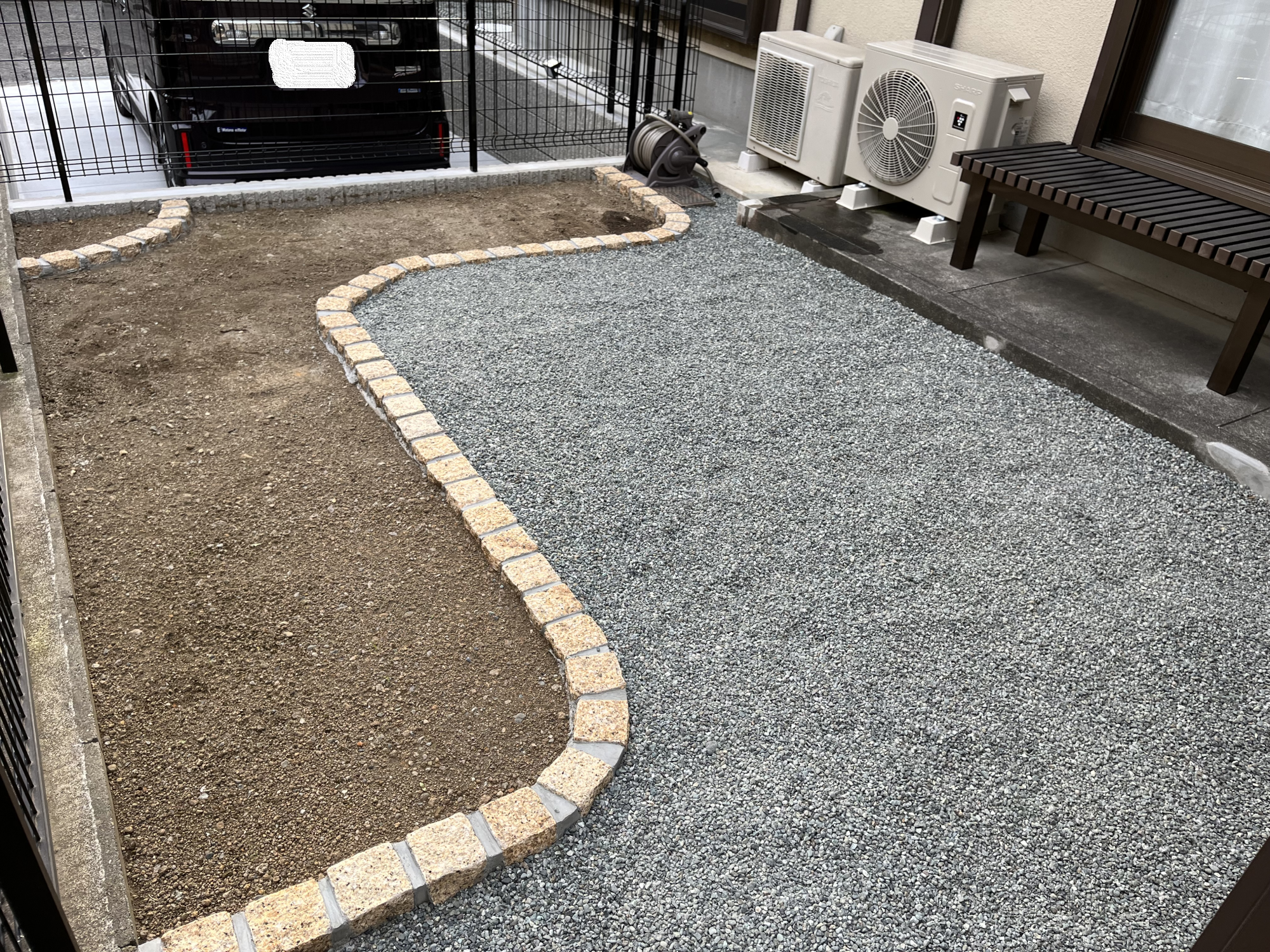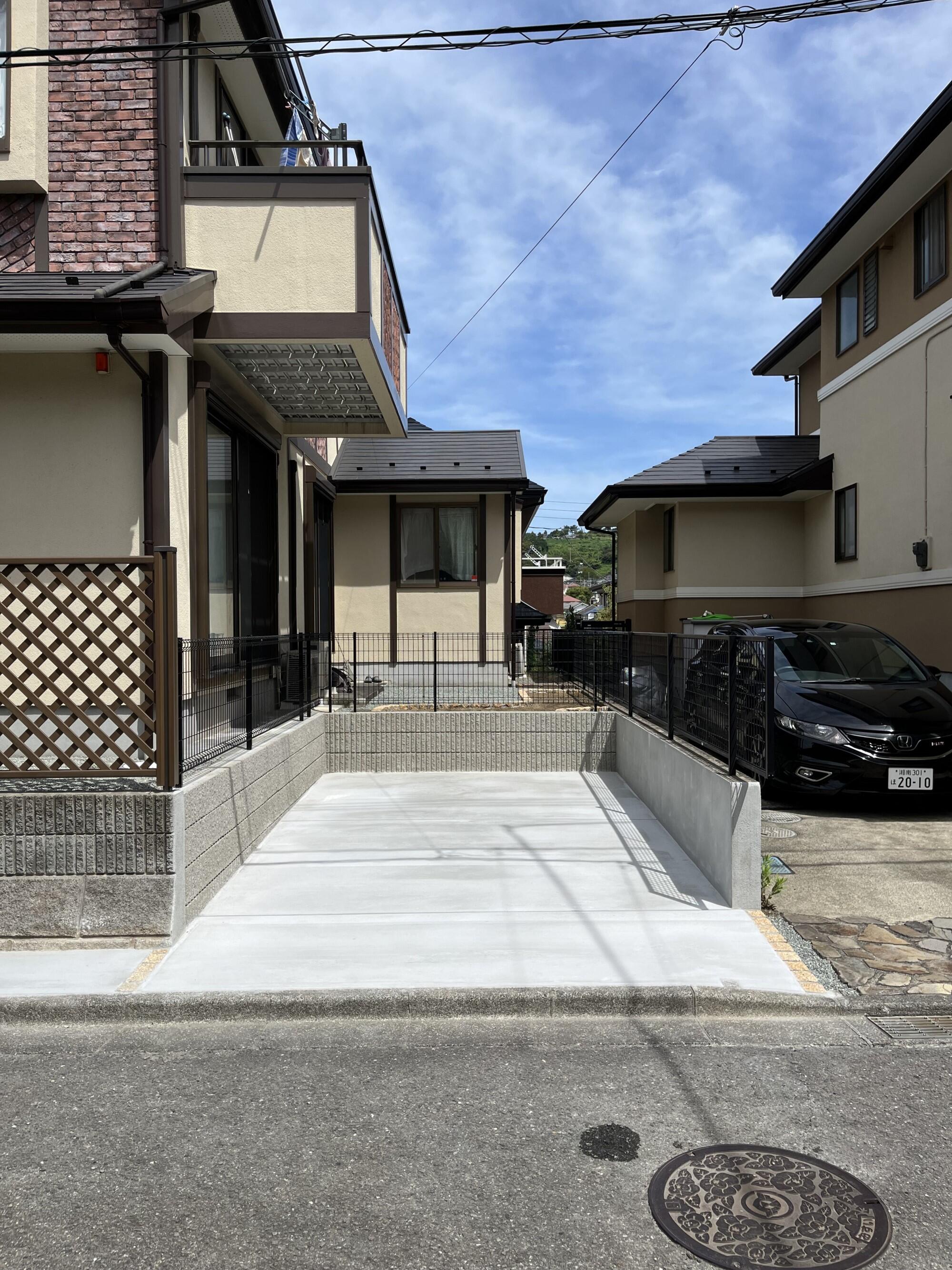 【庭整地工事】 ご家族構成の変化に伴う工事です。 お庭だった部分を半分「駐車スペース」にご依頼いただきました。