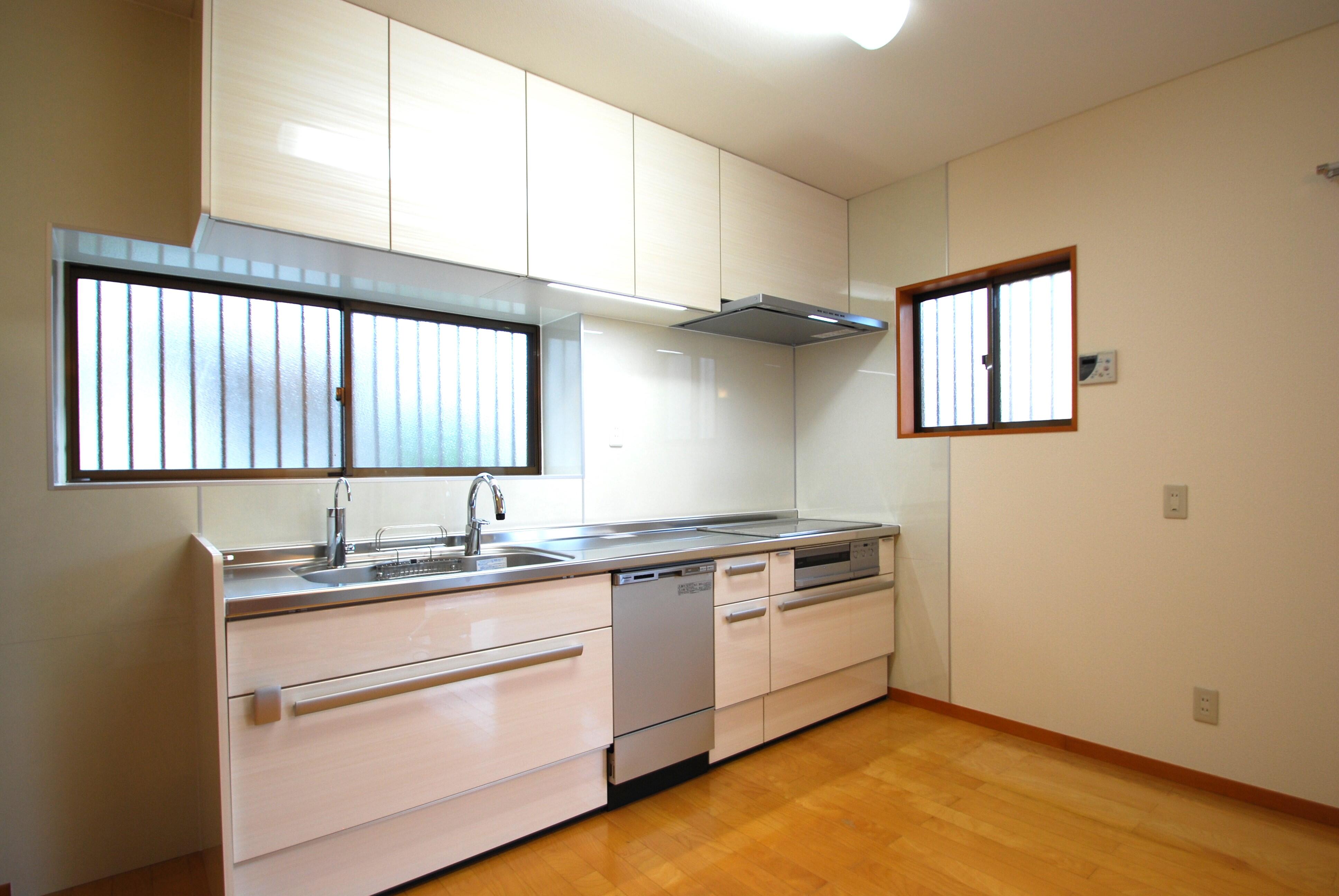 長年使ってきた木目調のキッチンを白を基調とした「リシェル」へリフォーム。